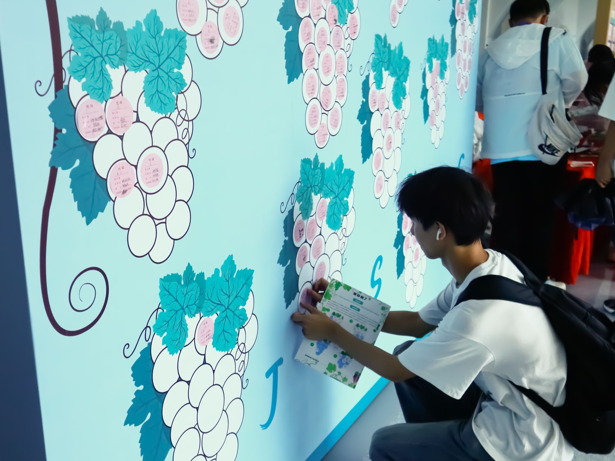 生涯嘉年华“葡萄熟了”活动现场参与者贴标签照片 周凡摄