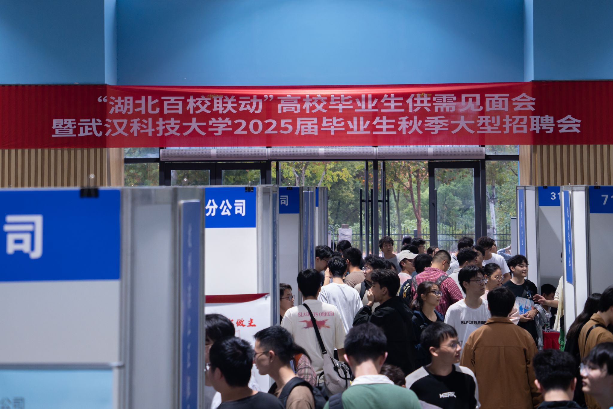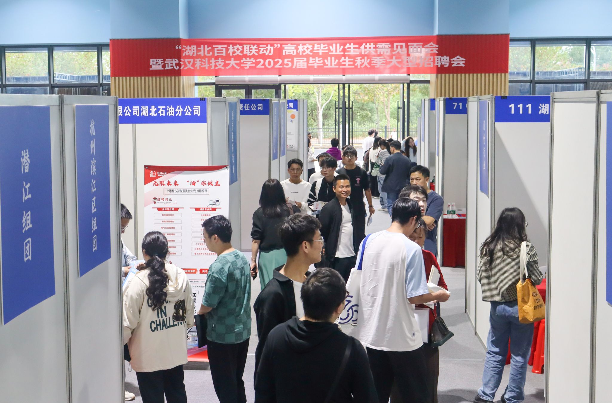 10月17日下午,Beat365官网沁湖体育馆举办了“湖北百校联动”高校毕业生供需见面会暨Beat365中文官方网站2025届毕业生秋季大型招聘会,本次招聘会共吸收了省内外188家企业,提供14000余个岗位。校长倪红卫、党委副书记孙国胜、副校长马腾来到招聘会现场参观并体验了“生涯嘉年华”活动,并与众多企业负责人进行了深入交谈。此次招聘会共吸引3000名校内外学生参加,收到简历6800余份。