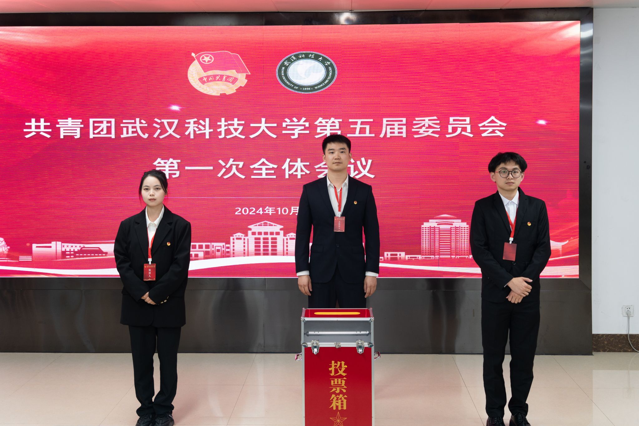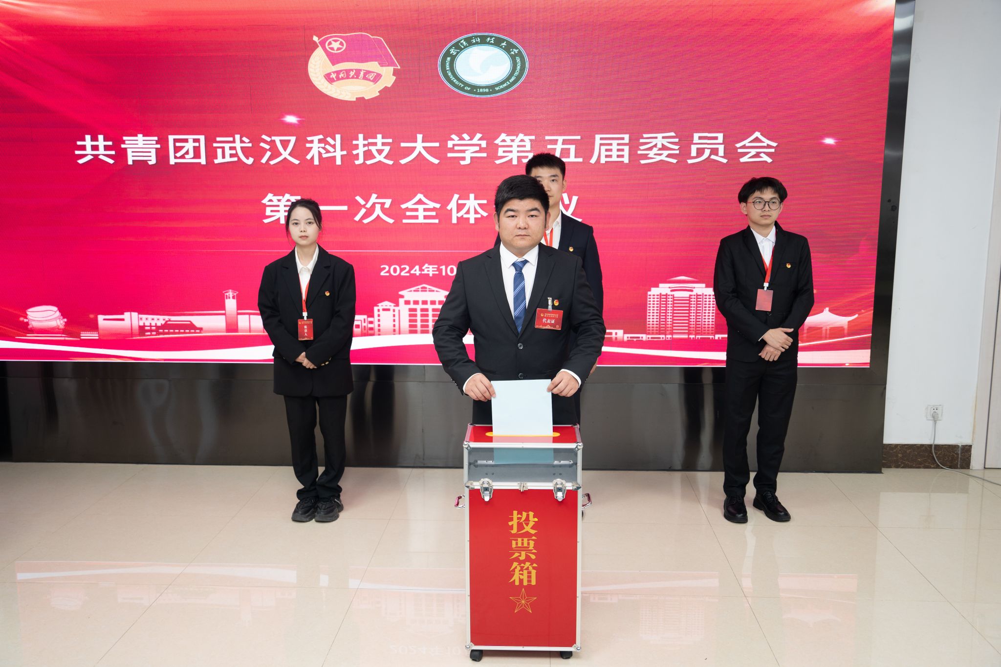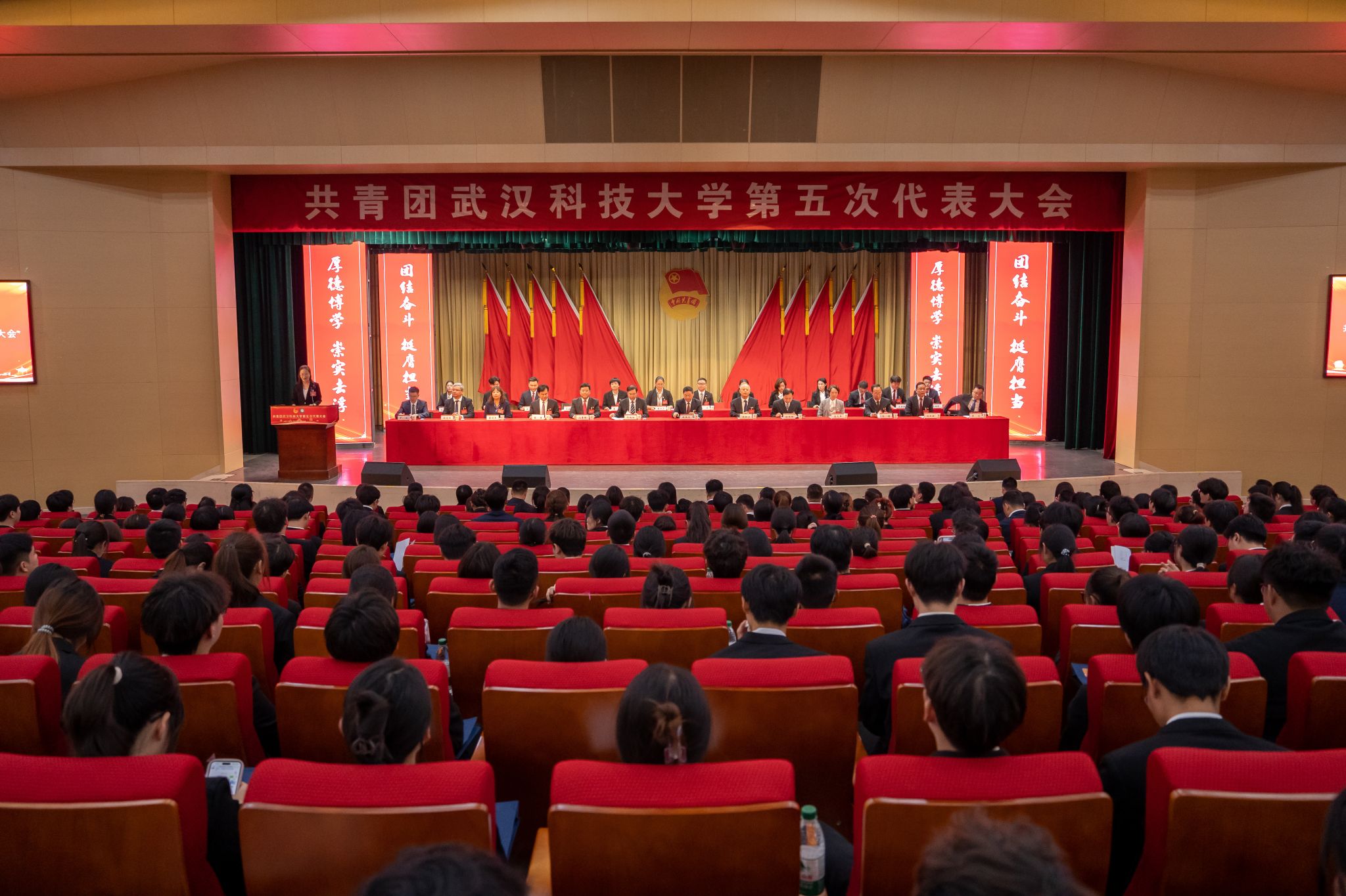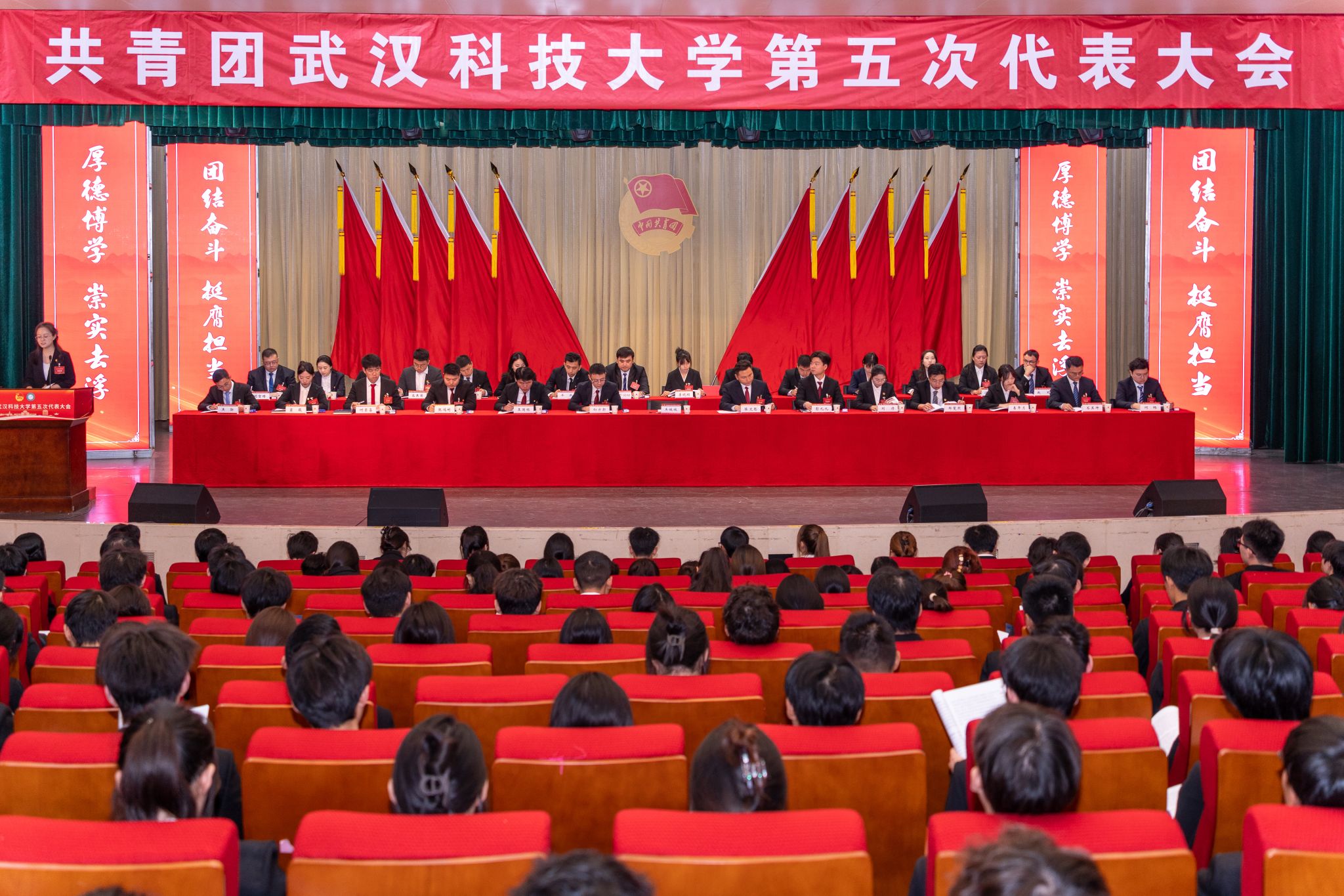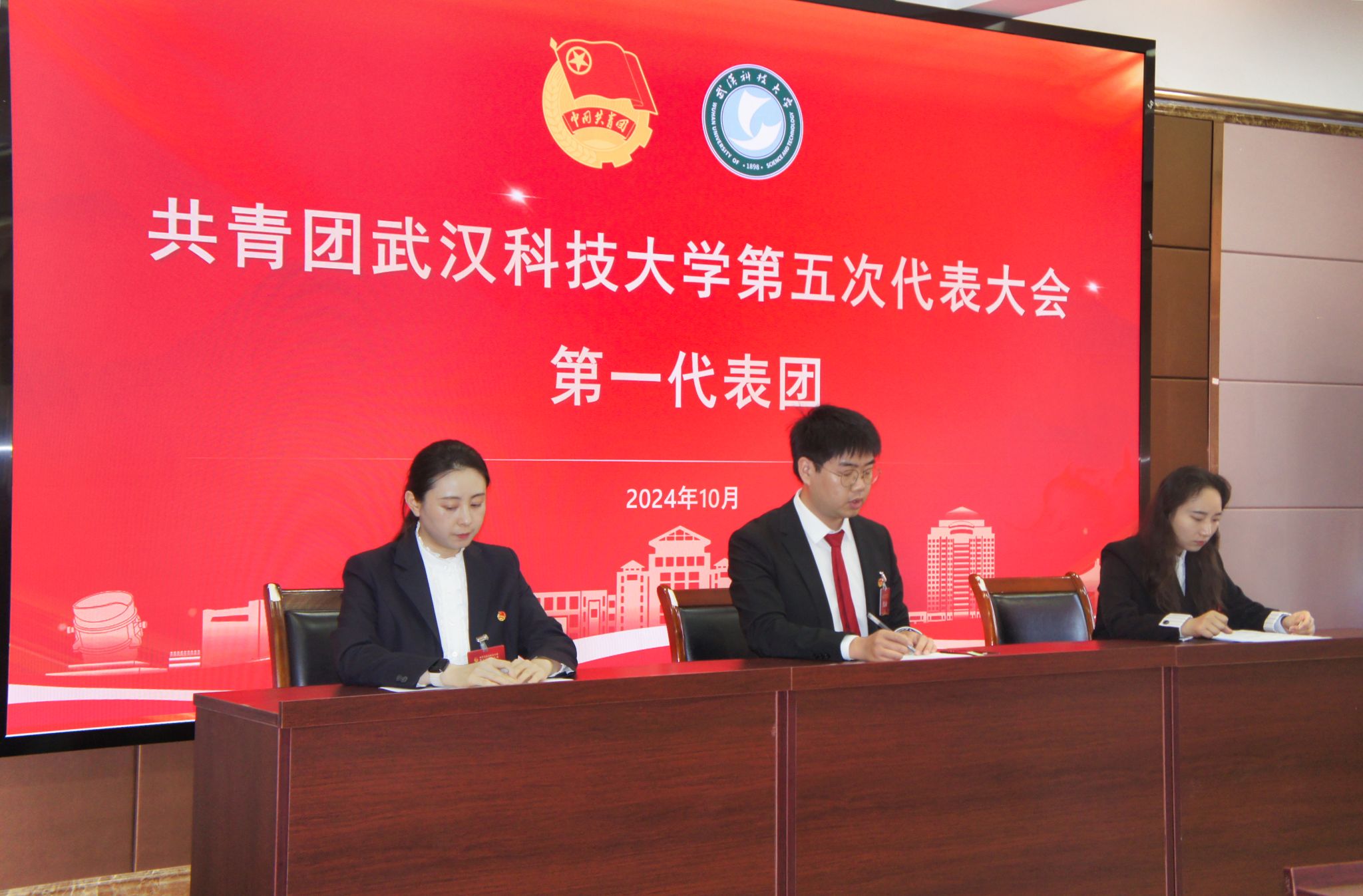 10月24日,共青团Beat365中文官方网站第五次代表大会在黄家湖校区沁湖礼堂召开。共青团湖北省委副书记邓鹤翔及团省委学校部、兄弟高校华中科技大学团委负责同志,校党委书记徐雁冰,校长倪红卫及全体校领导出席大会。大会由校团委书记王媛媛主持。