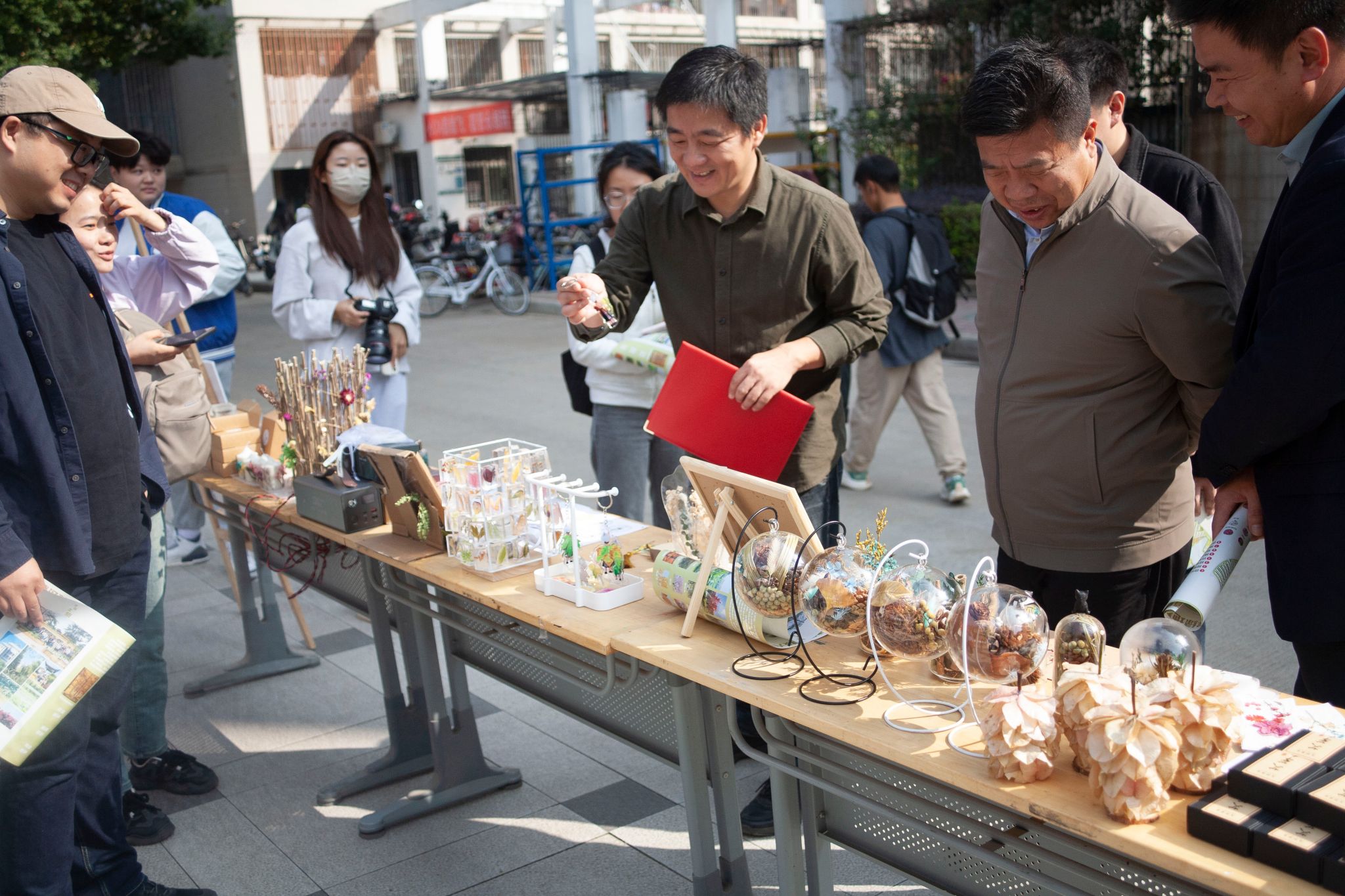 11月1日,艺术院于南园一站式社区举行主题为“劳动与心理教育融合,匠心打造绿色校园”植景艺术课程展的开幕式。黄家湖综合办公室副主任梅海兵,Beat365官网学工部副部长杨永彬,学工部郭欣雨,艺术院党委副书记郭慧霞,环境设计系副教授李一霏,心理健康中心胡文燕,2021级辅导员江锋,2022级辅导员赵亚龄,2023级辅导员潘甜和2024级辅导员李安受邀参与。艺术院环境设计系教师侯涛主持本次开幕式。