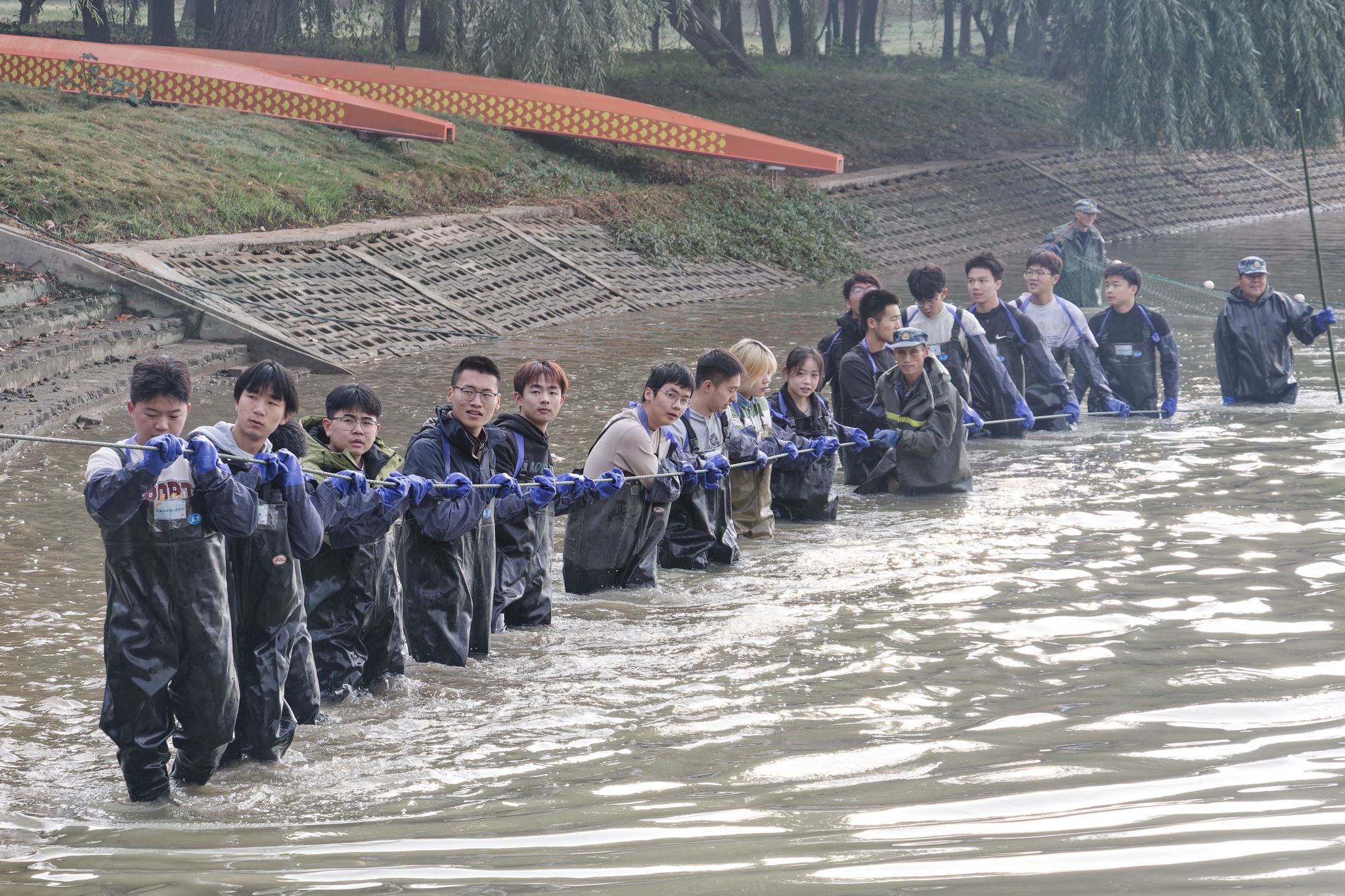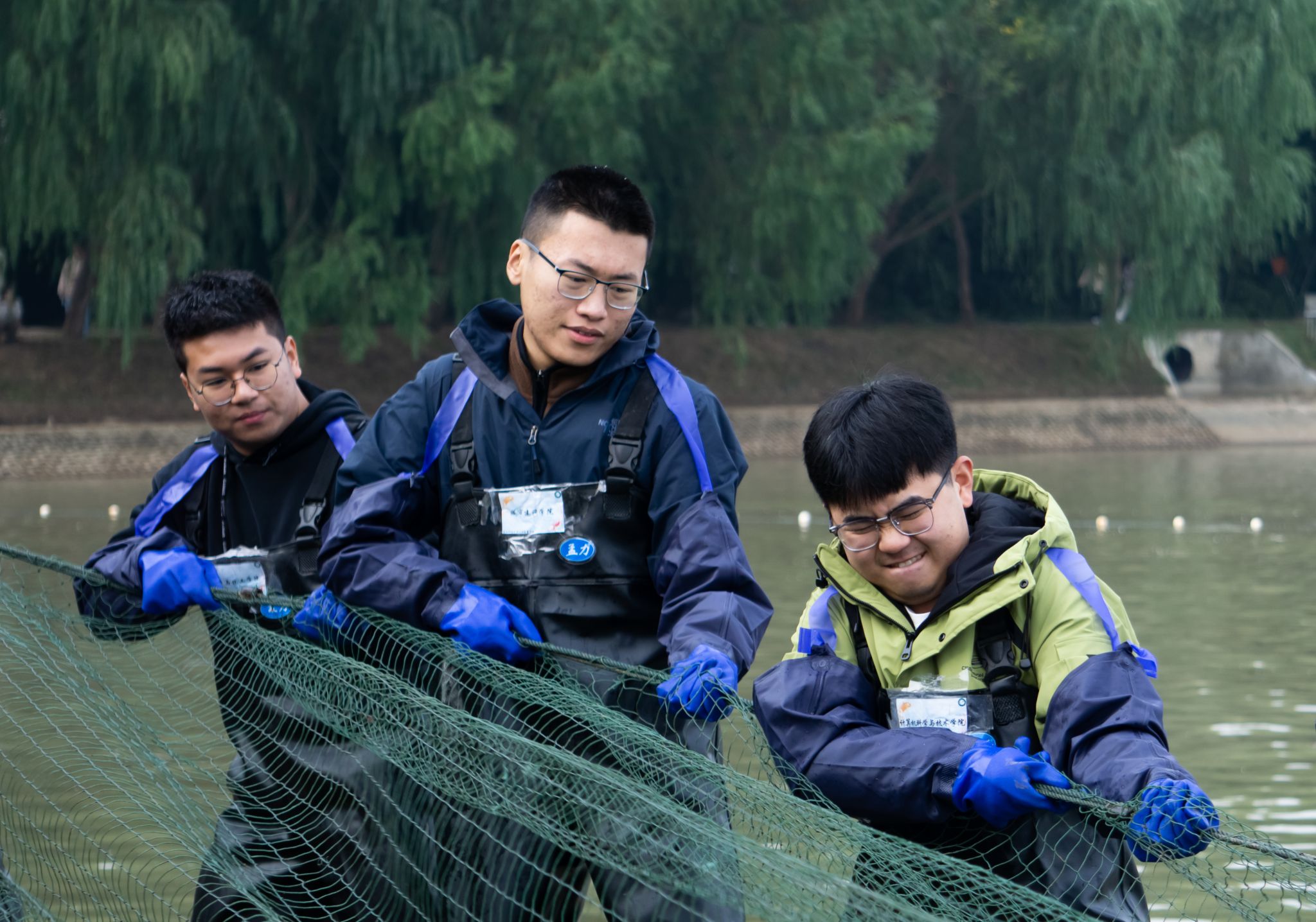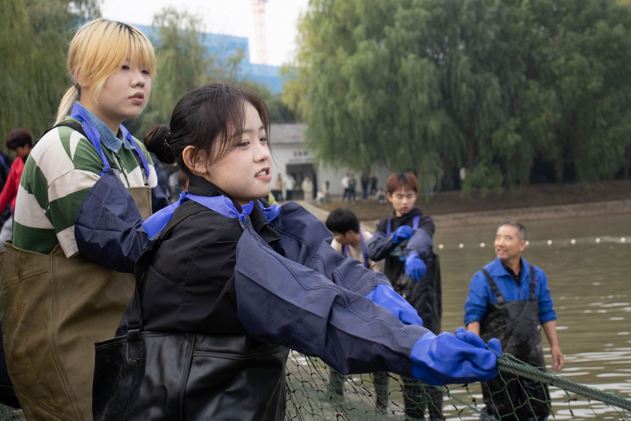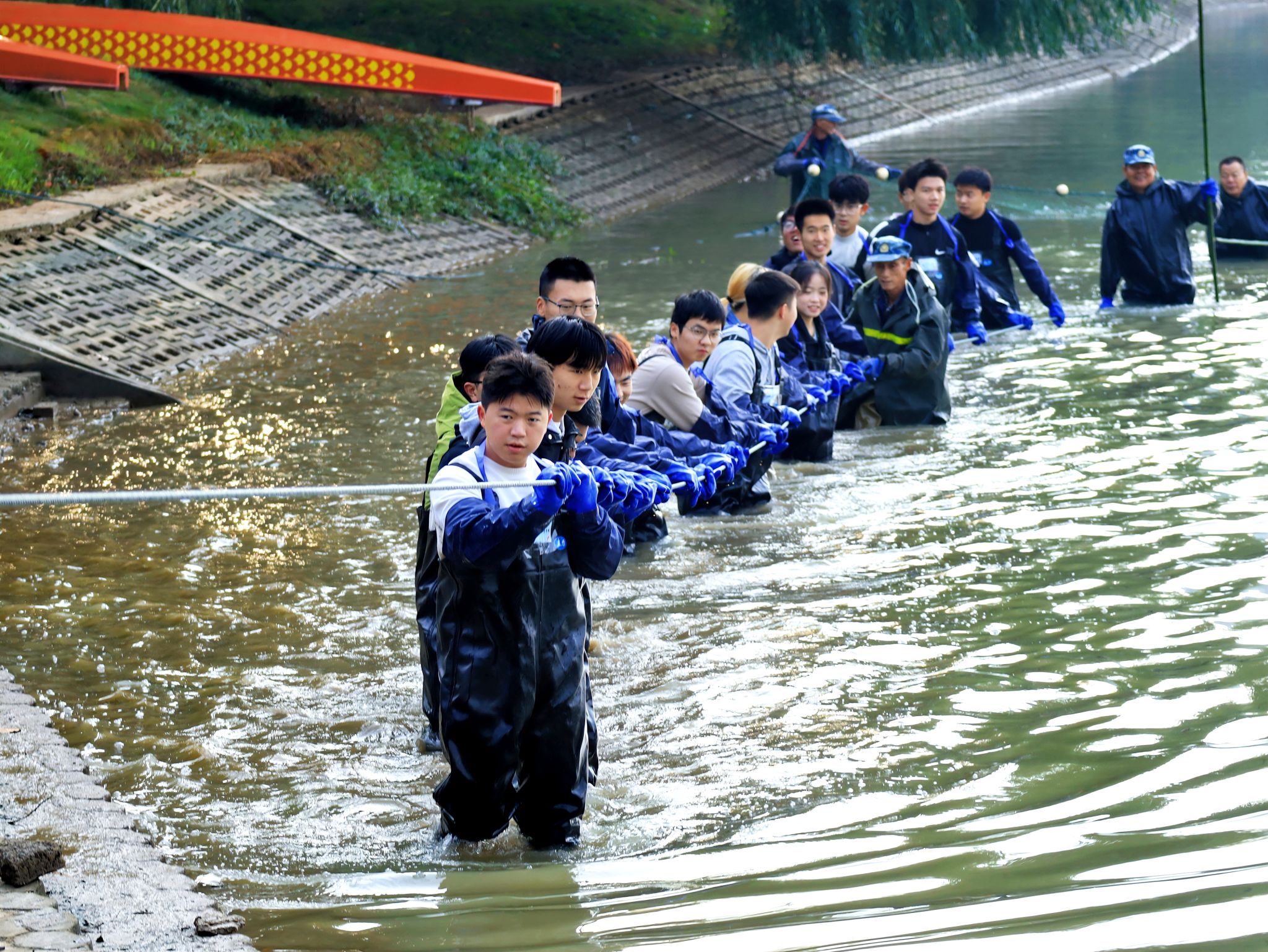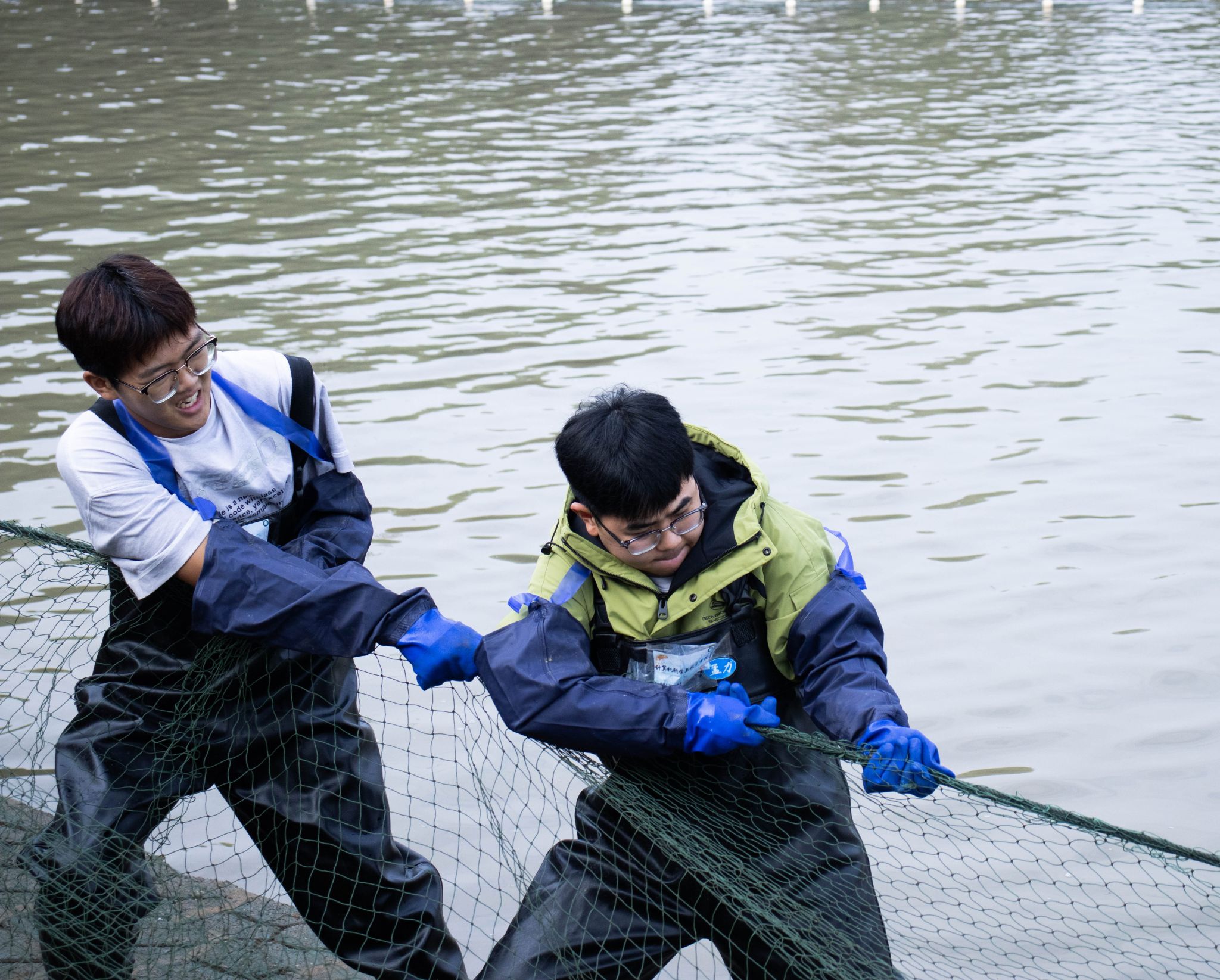 同学们拉网捞鱼 吴毅萌摄