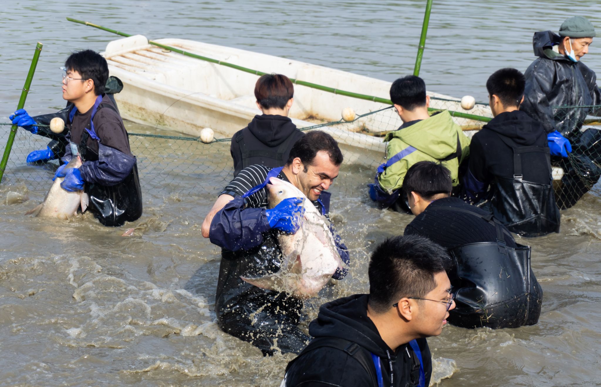 留学生拉网 王铭浩摄