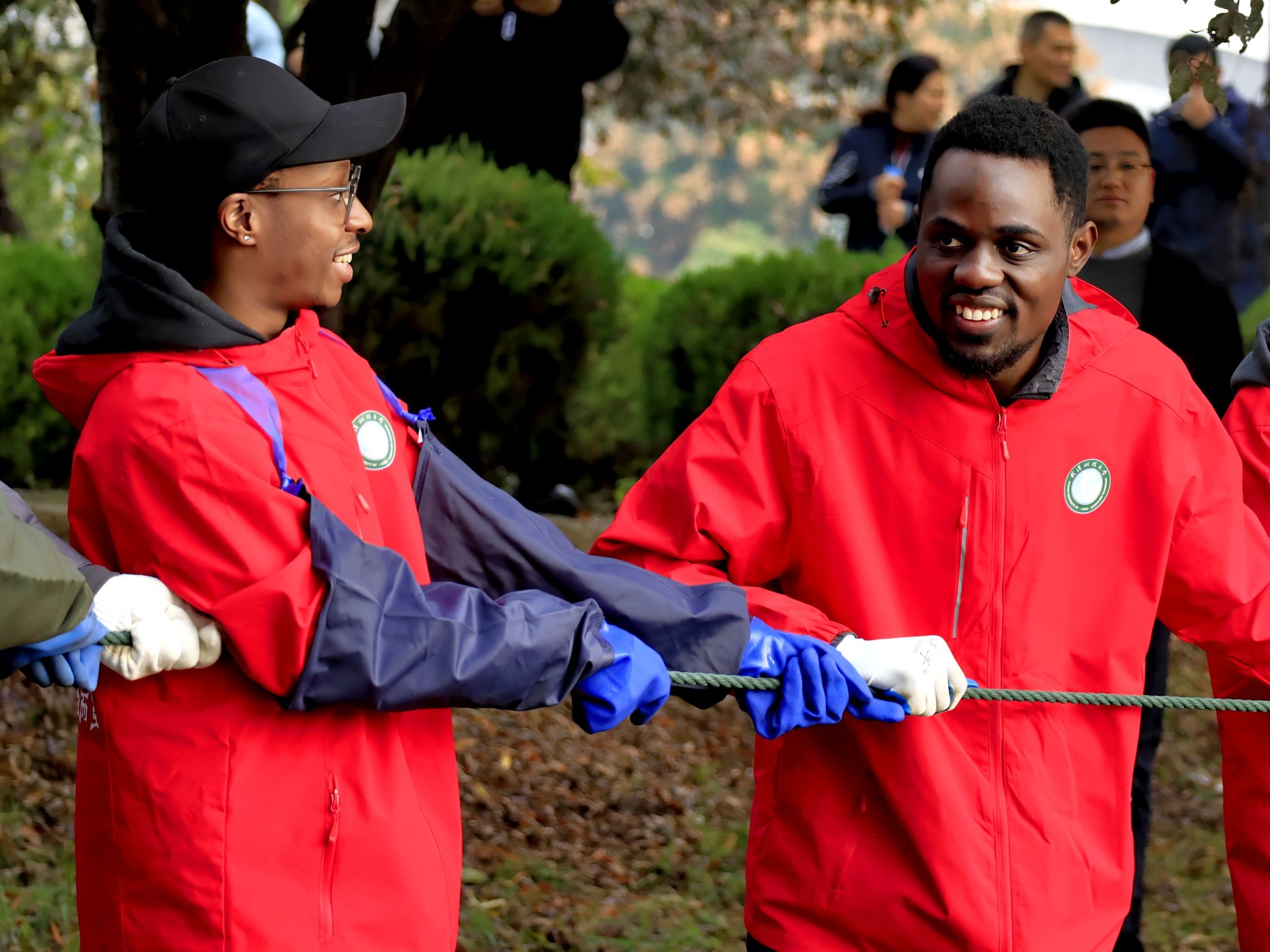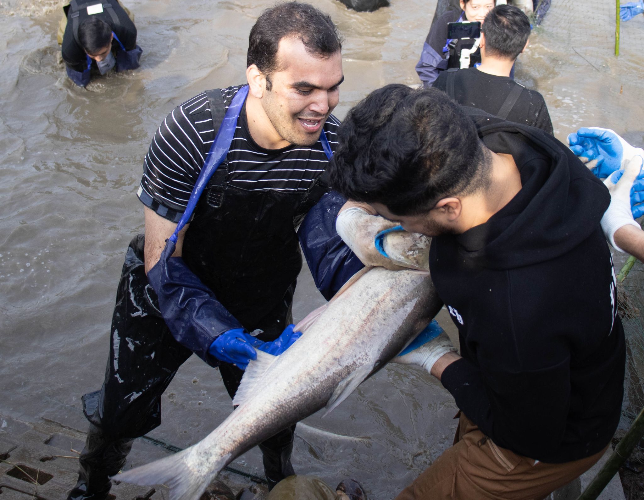 留学生拉网特写 王铭浩摄