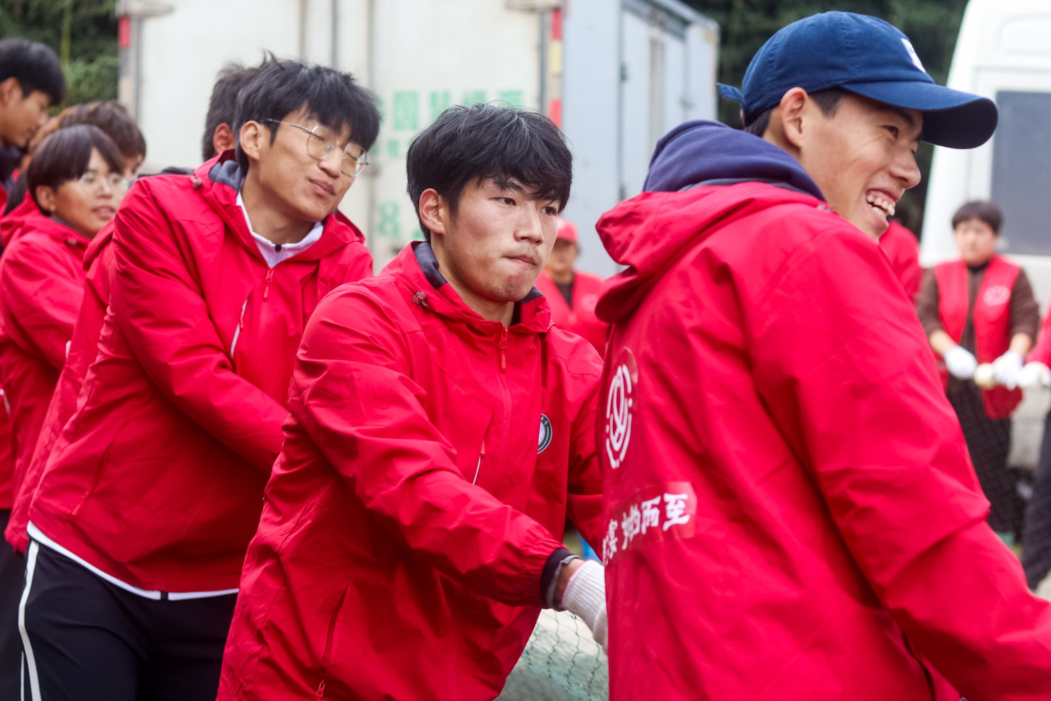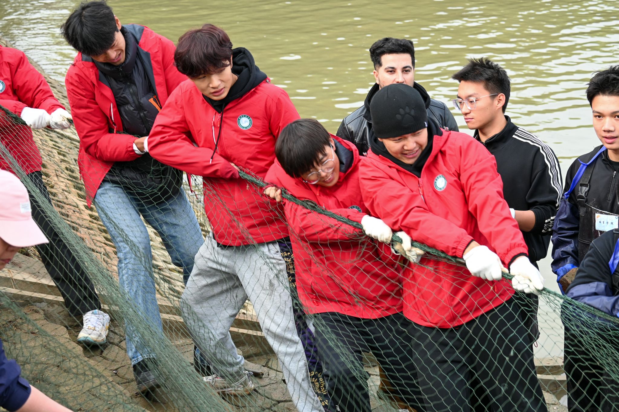 学生共同拉网 杨欣怡摄