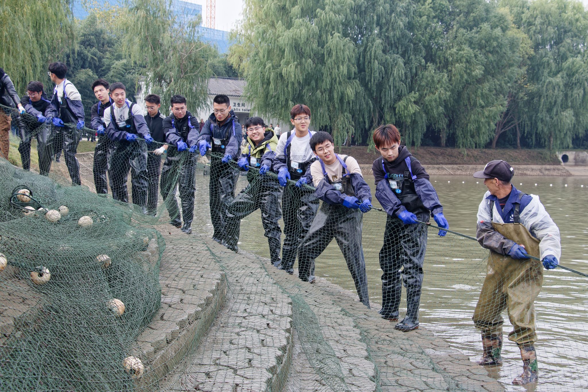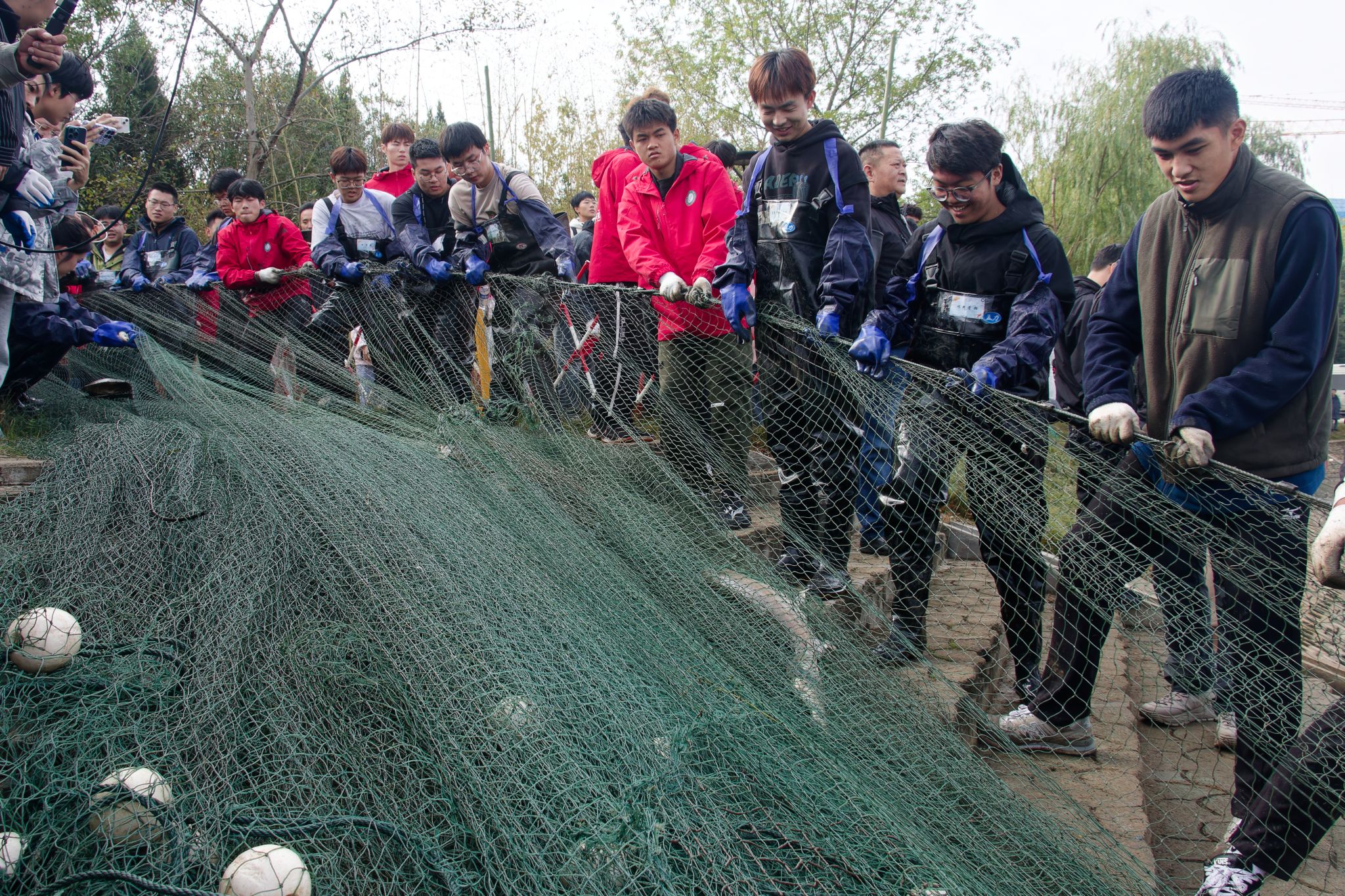 同学们激动的拉网 吴毅萌摄