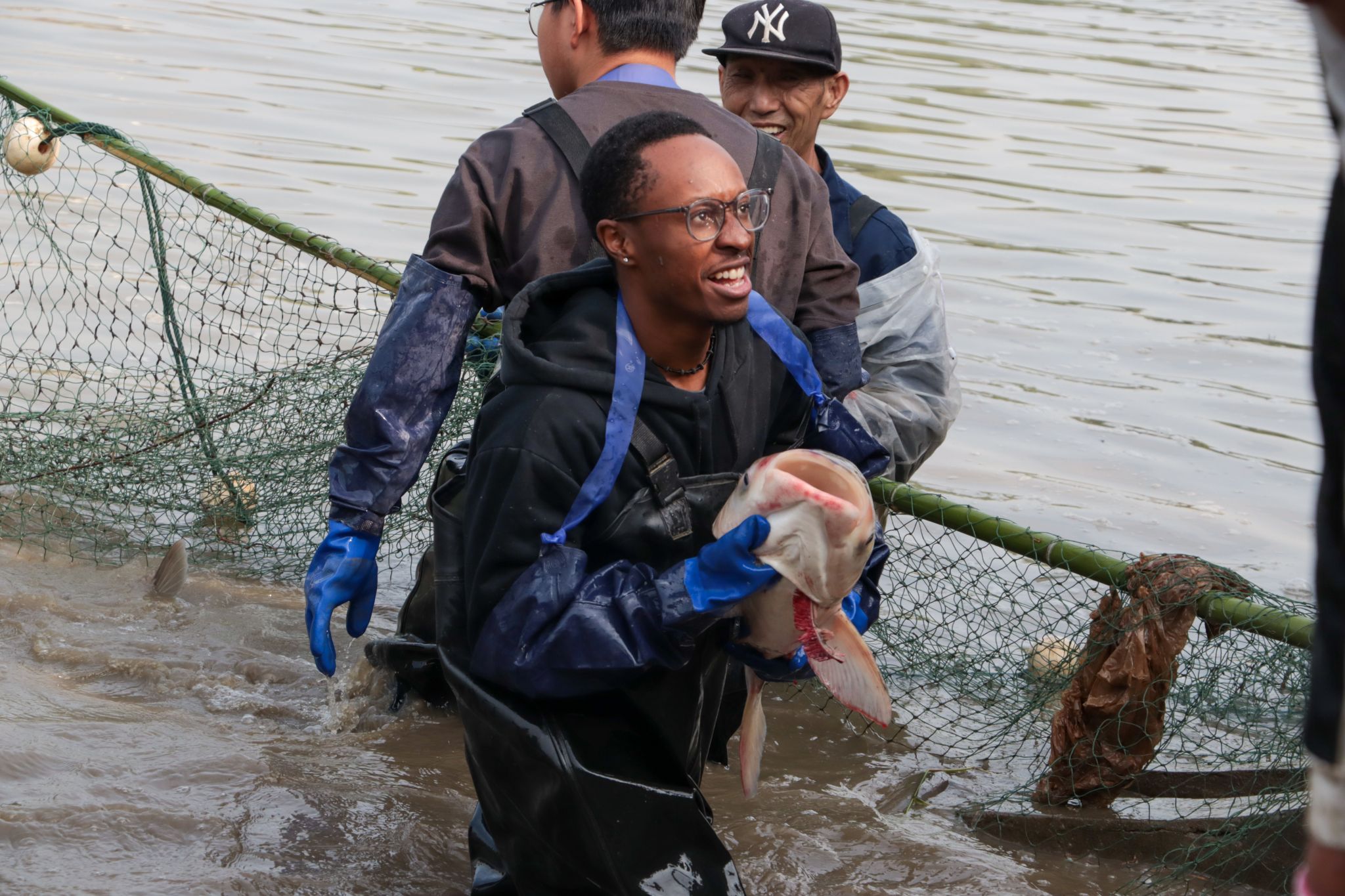 留学生抓鱼 孙正恒摄