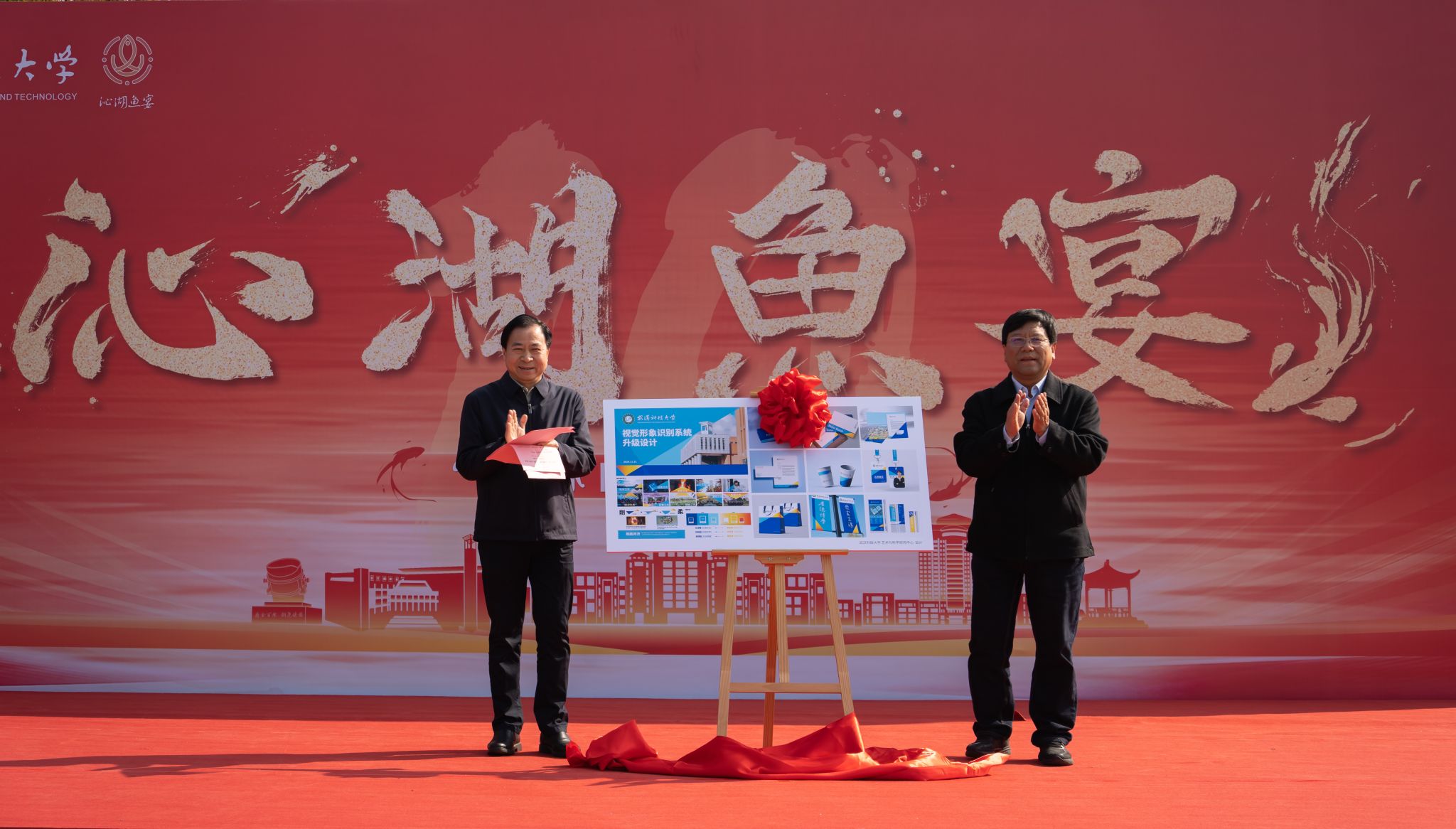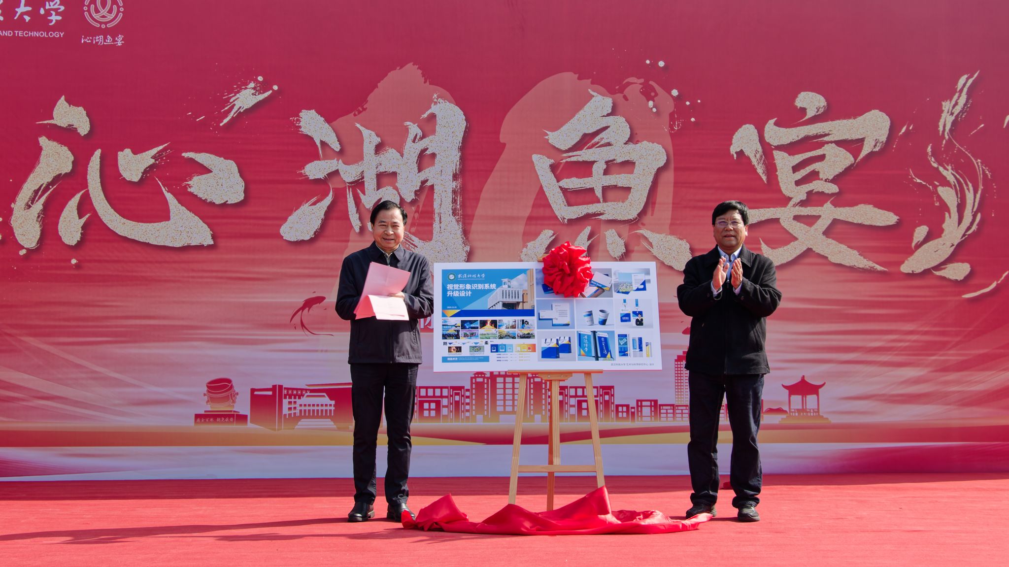 校党委副书记孙国胜、沈季伟一同为学校新视觉形象识别系统揭幕 高文帅摄
