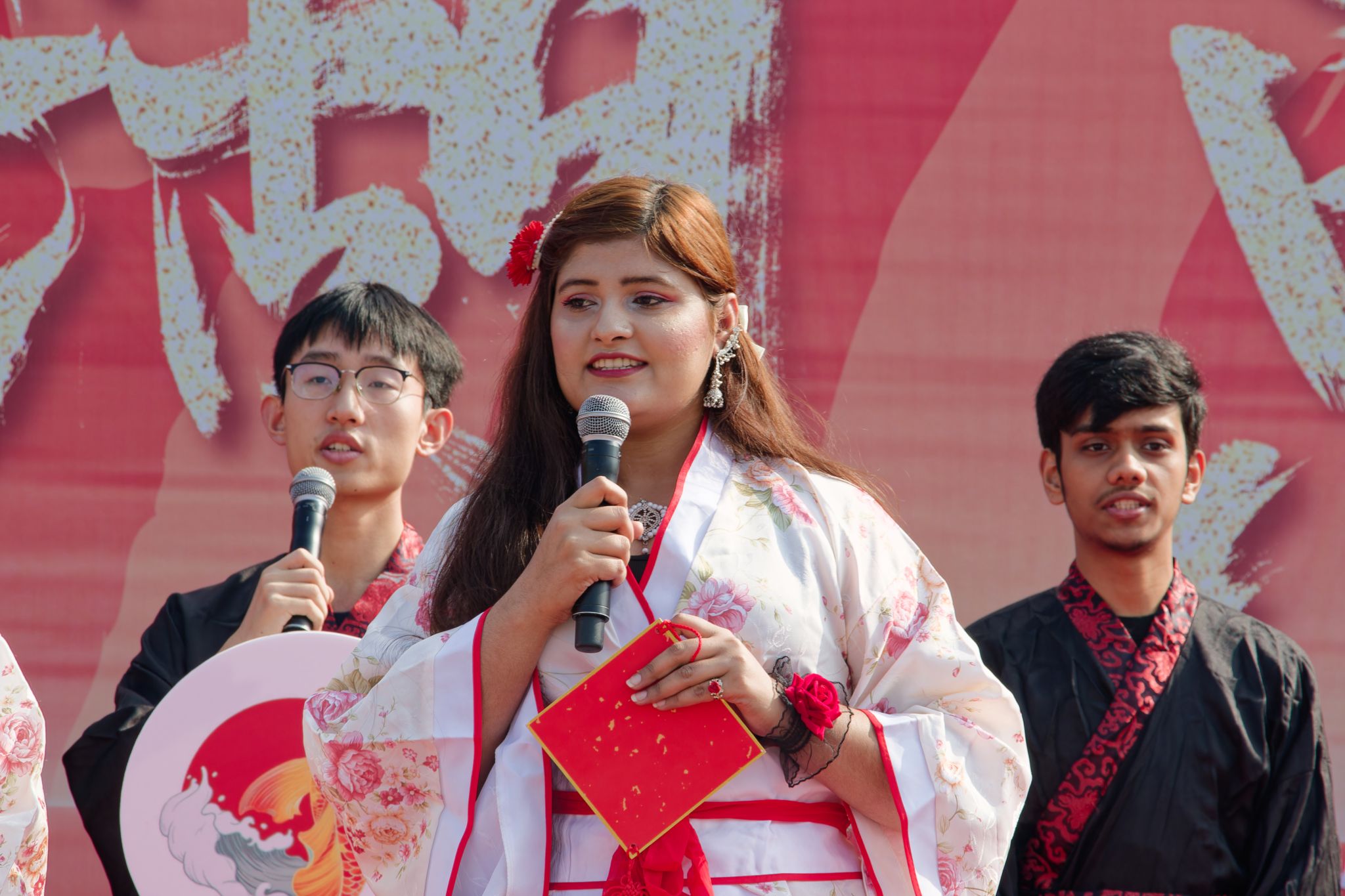 留学生与笛萧协会诗朗诵特写 孙正恒摄