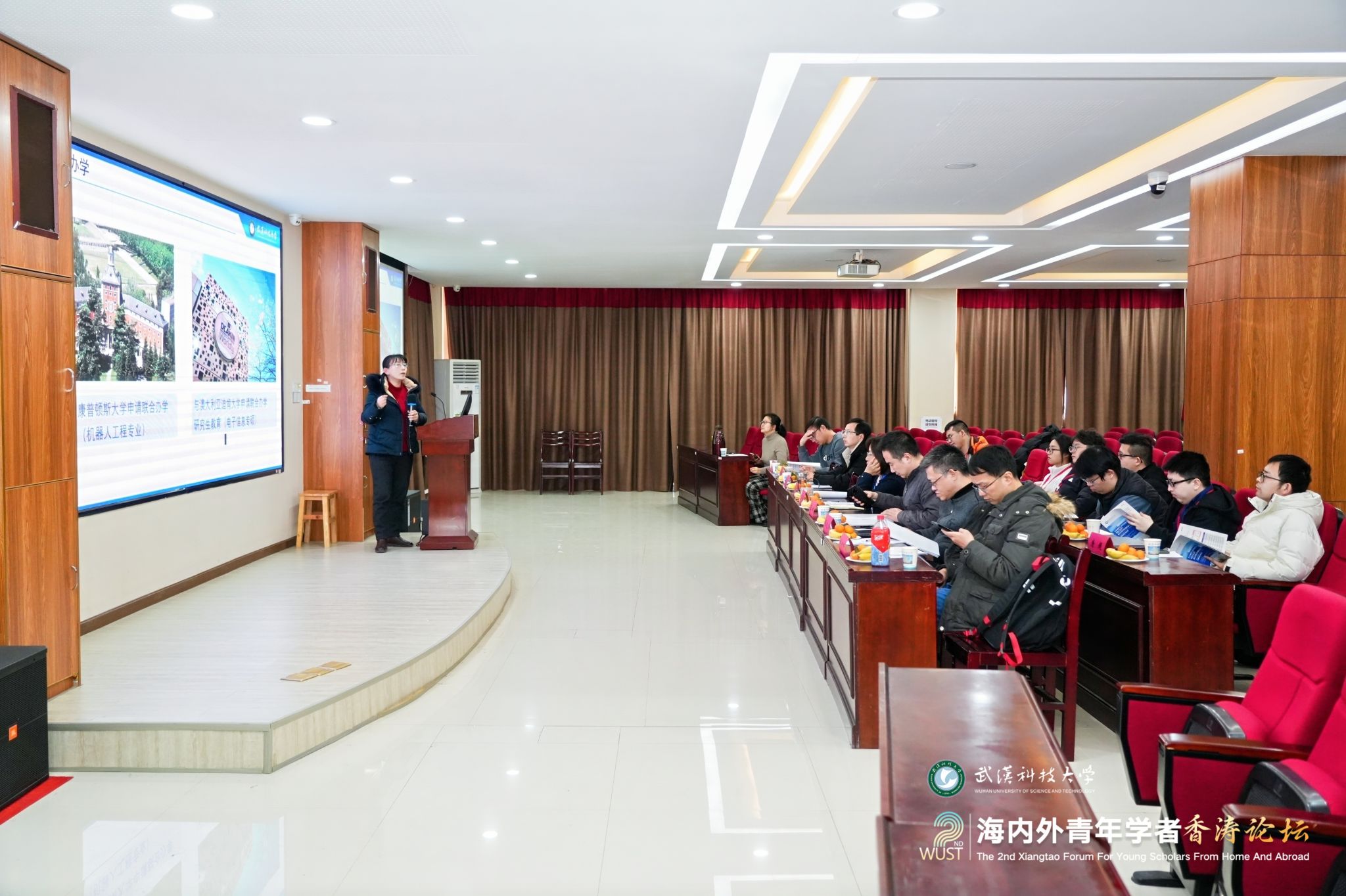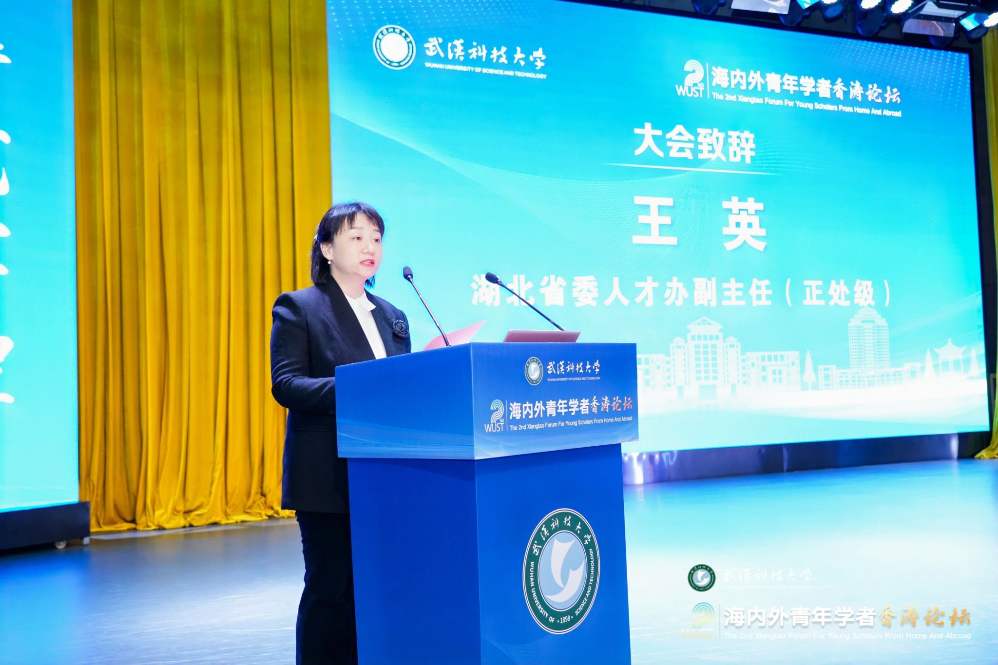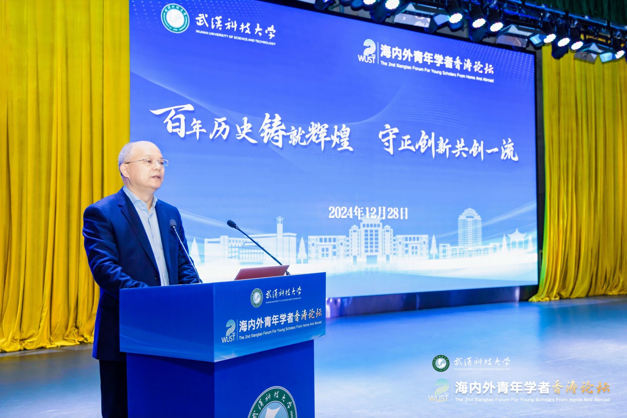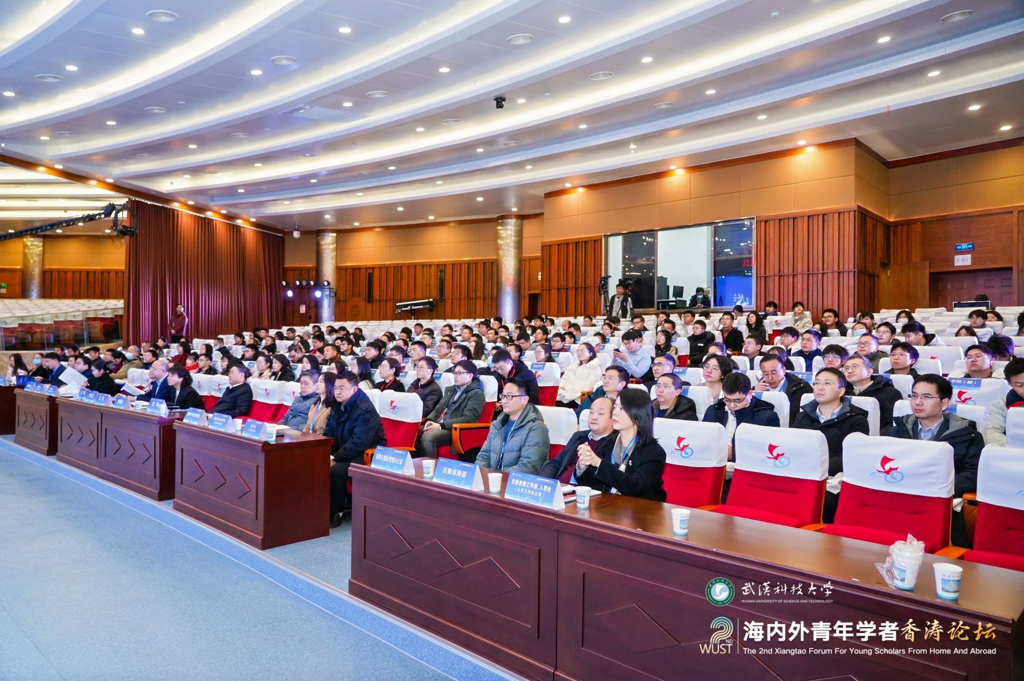 12月28日上午,第二届海内外青年学者香涛论坛在青山校区碧园会堂开幕。来自海内外的100余位青年学者在Beat365中文官方网站欢聚一堂,聚焦学术前沿,碰撞创新火花,共叙友谊与合作。湖北省委人才办副主任王英,校党委书记徐雁冰,校长倪红卫,副校长吕勇、马腾出席主论坛。主论坛由吕勇主持。