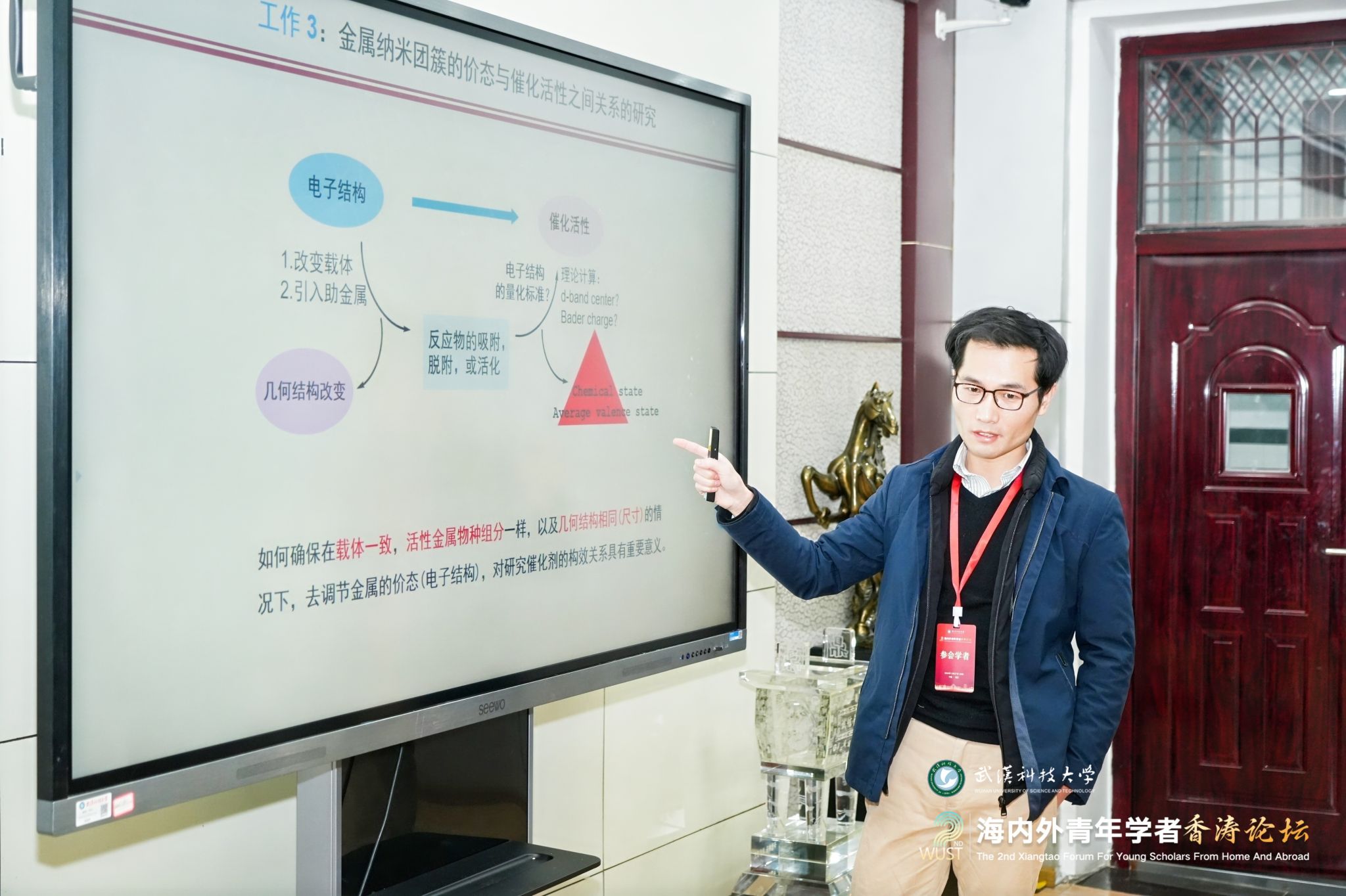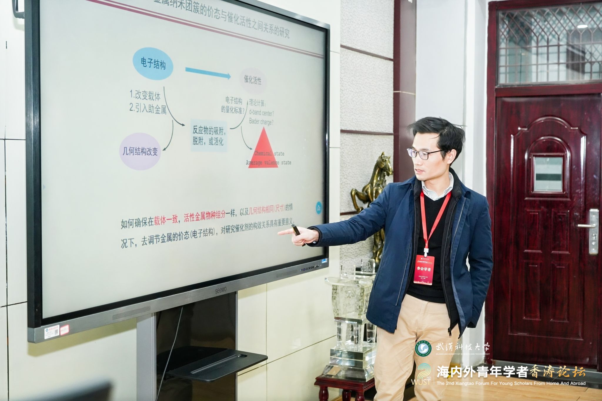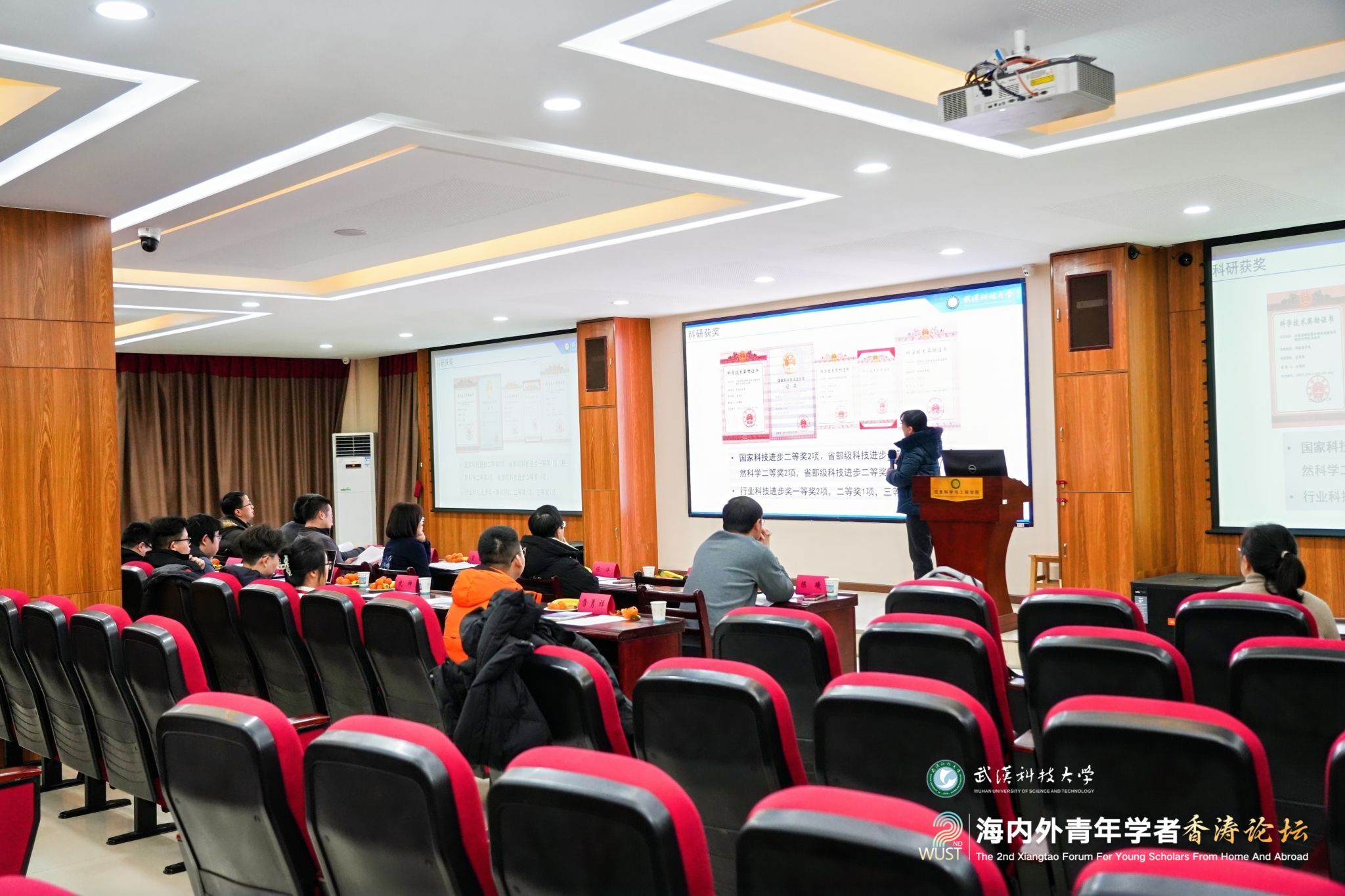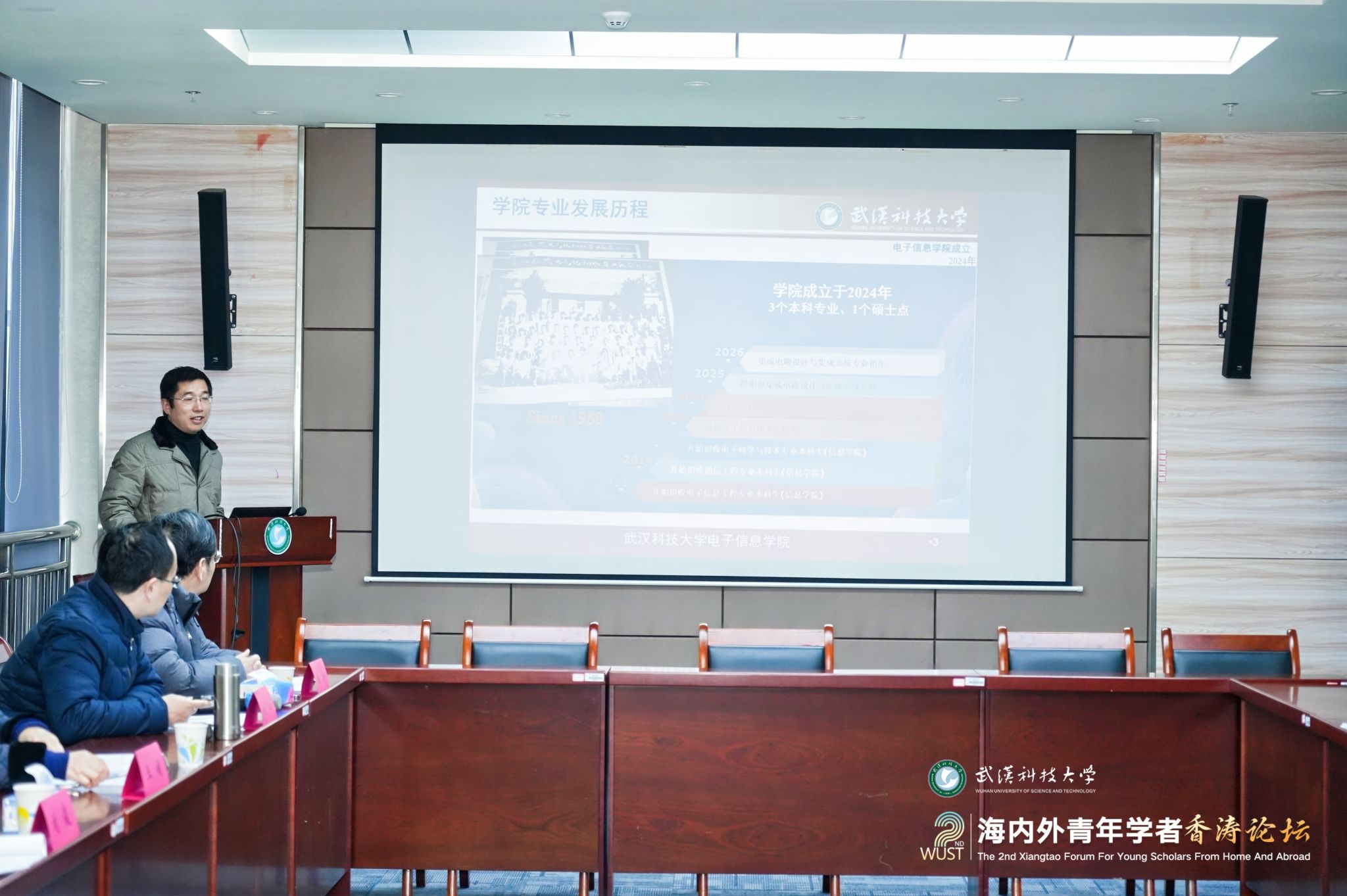 12月28日上午,第二届海内外青年学者香涛论坛在青山校区碧园会堂开幕。来自海内外的100余位青年学者在Beat365中文官方网站欢聚一堂,聚焦学术前沿,碰撞创新火花,共叙友谊与合作。湖北省委人才办副主任王英,校党委书记徐雁冰,校长倪红卫,副校长吕勇、马腾出席主论坛。主论坛由吕勇主持。
