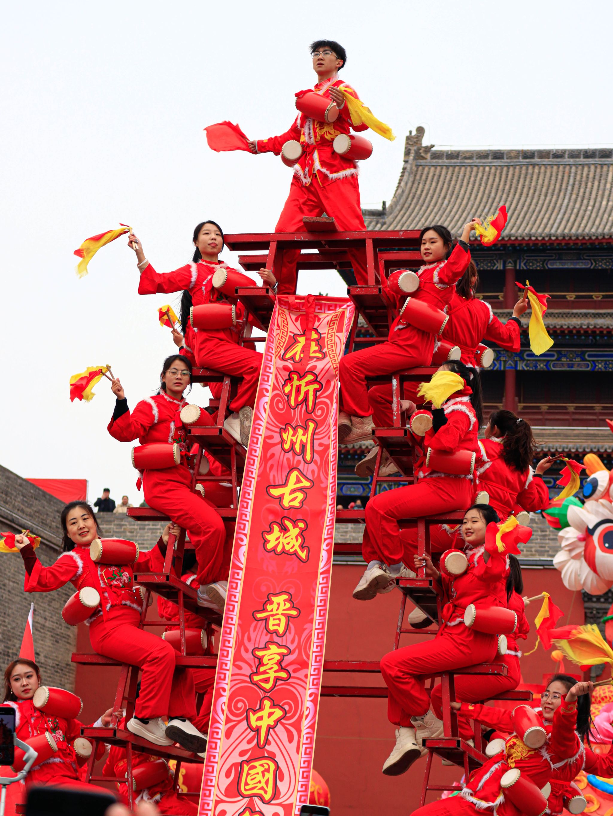 忻州古城北广场高台花鼓地面表演 王铭浩摄