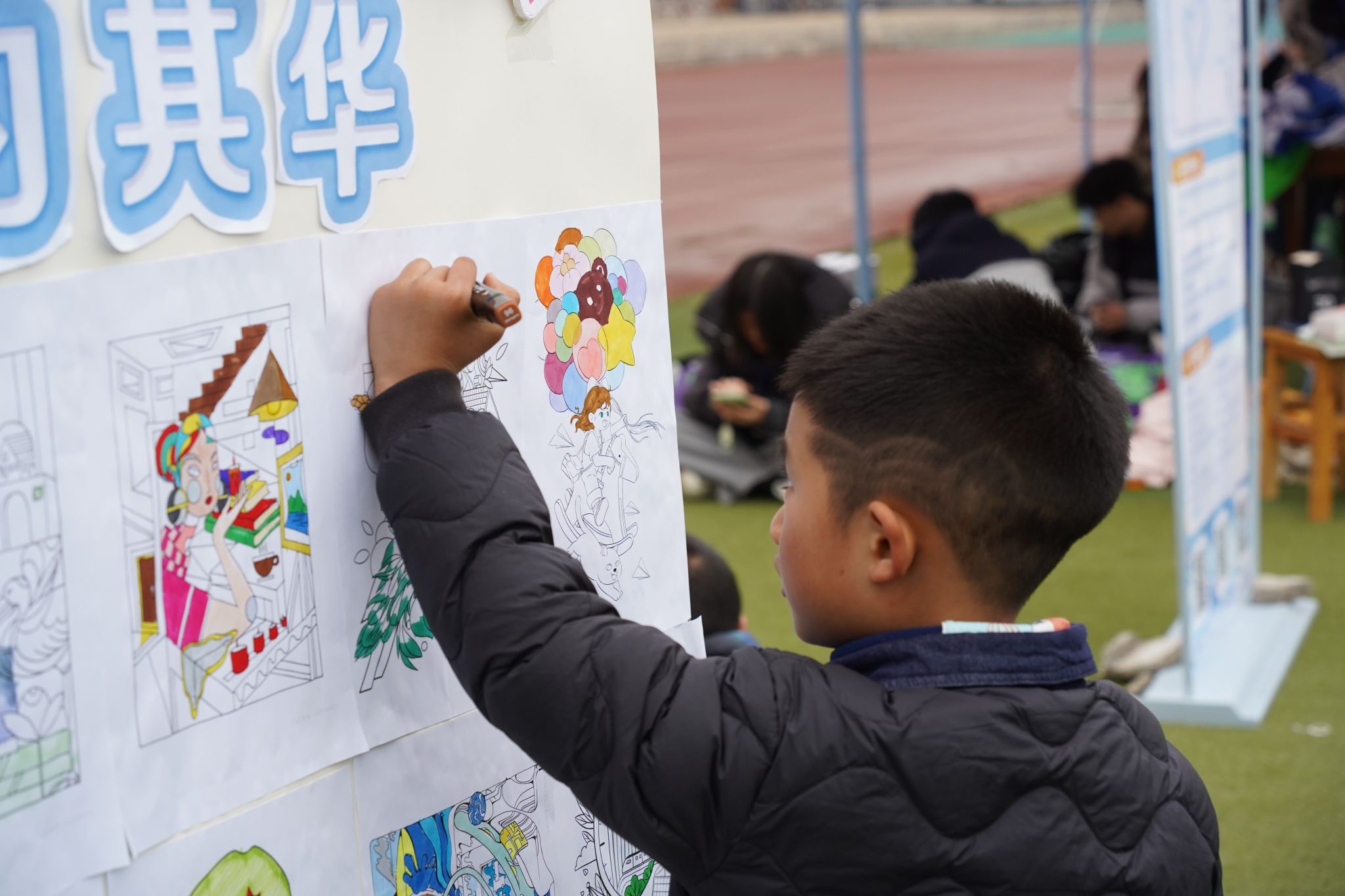 研支团支教新僵时当地小朋友绘画展示 吴毅萌摄