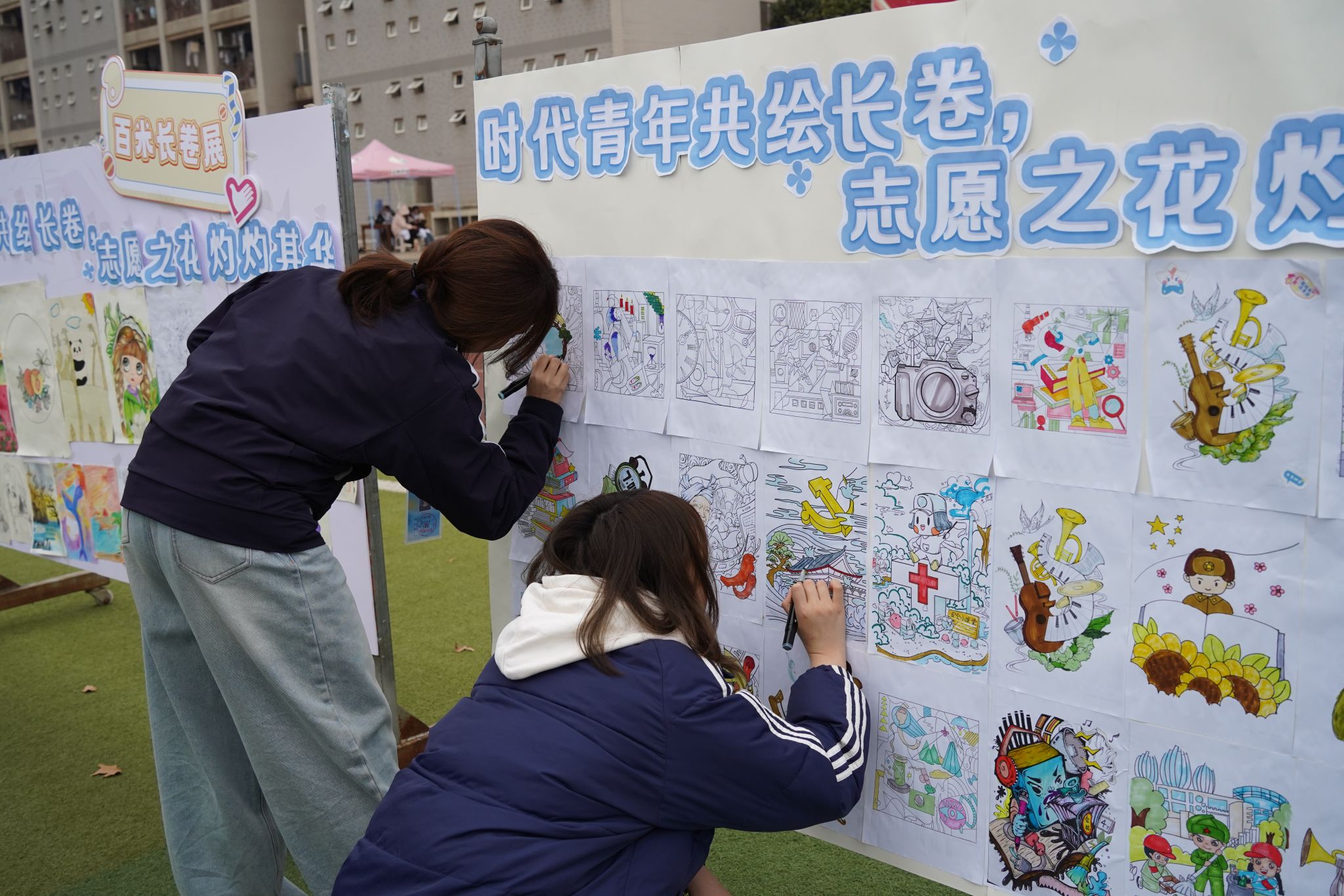 为弘扬”奉献、友爱、互助、进步”的志愿精神,展现志愿风采,体现青春活力,Beat365中文官方网站青年志愿者服务总队特于3月9日隆重举行第十七届学习雷锋精神志愿服务月启动仪式,并于南苑操场举行志愿者嘉年华和志愿者“百米长卷”绘制活动