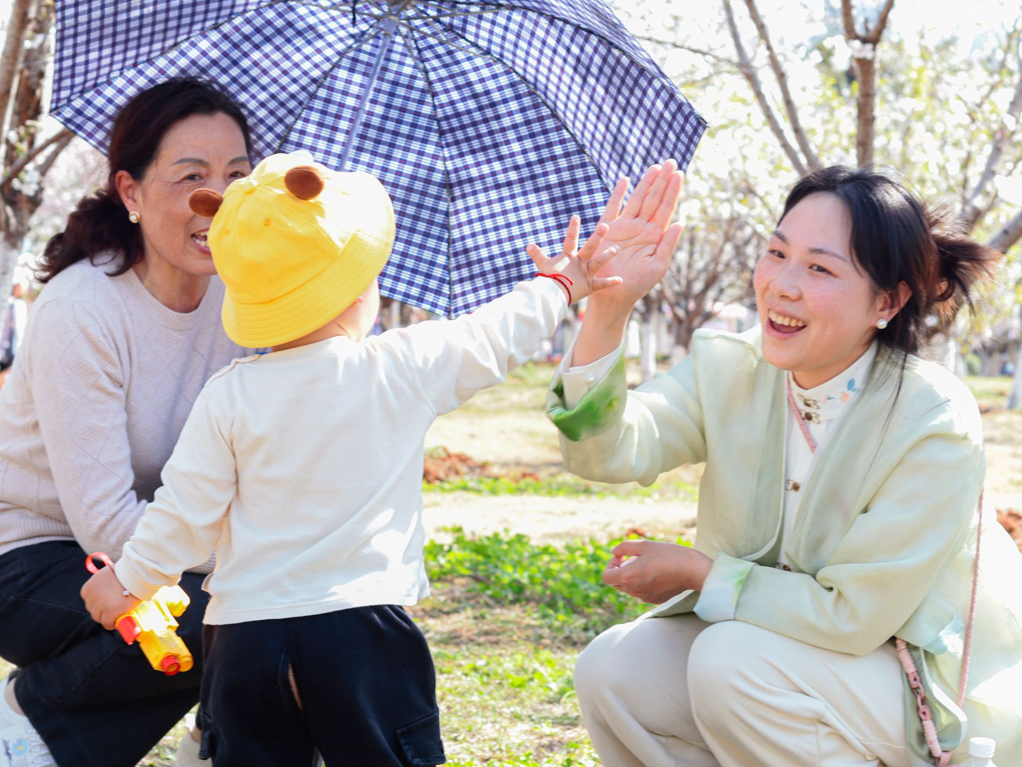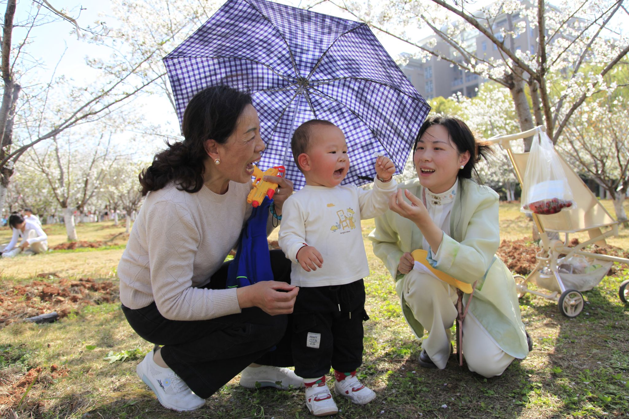 樱花树下的一家人 吴毅萌摄