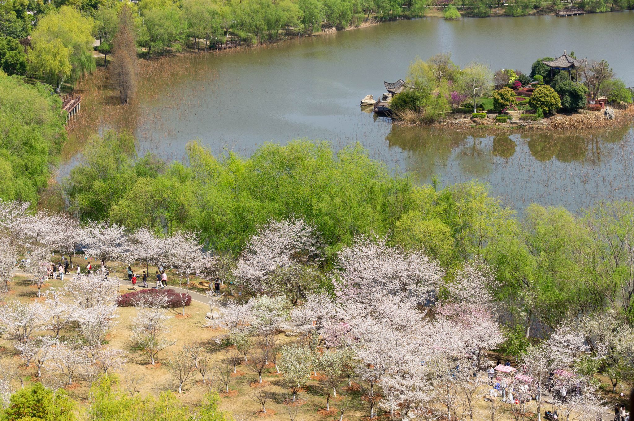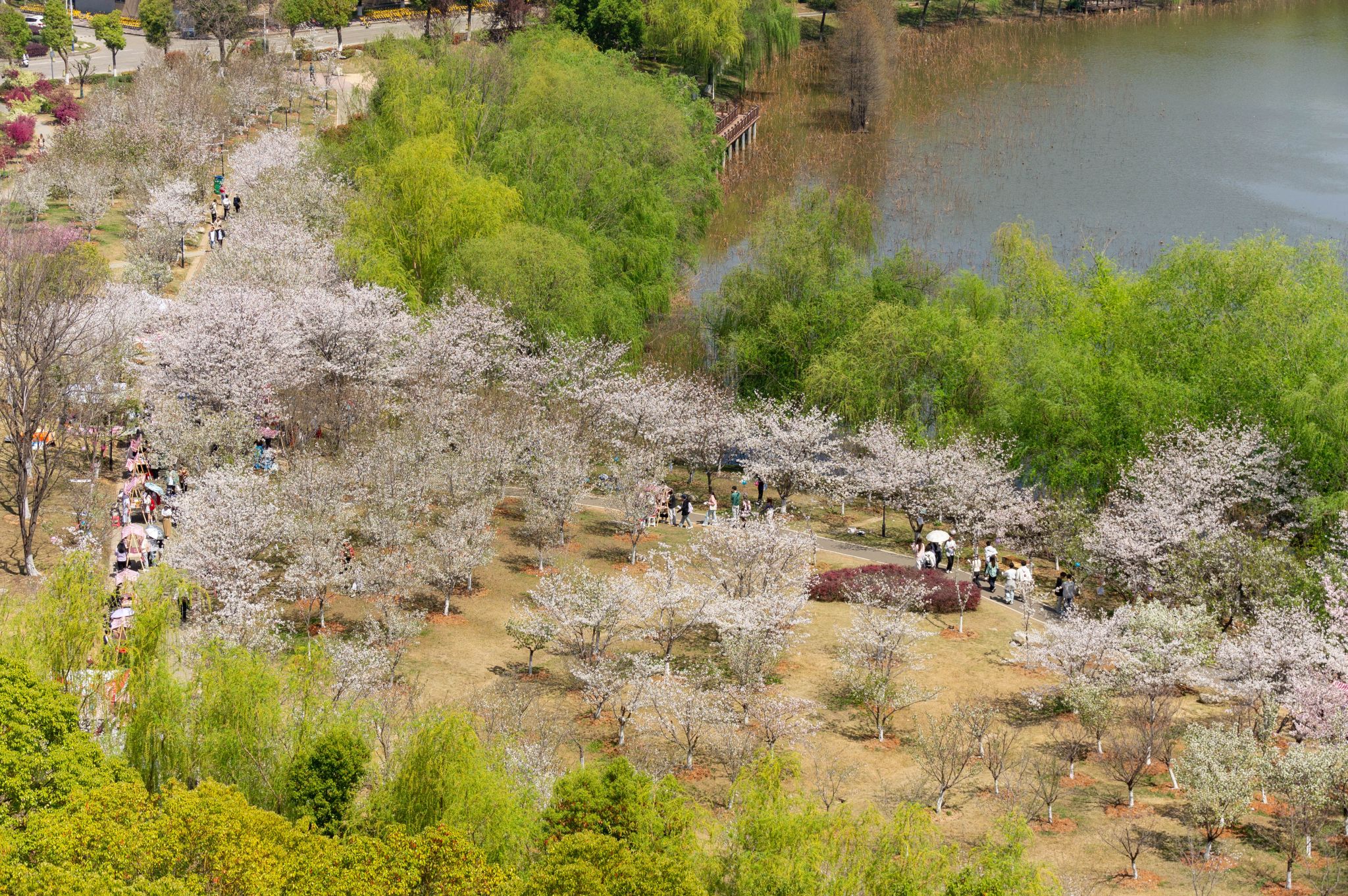 樱花大道 沁湖畔,樱花园 全景 王翔宇摄