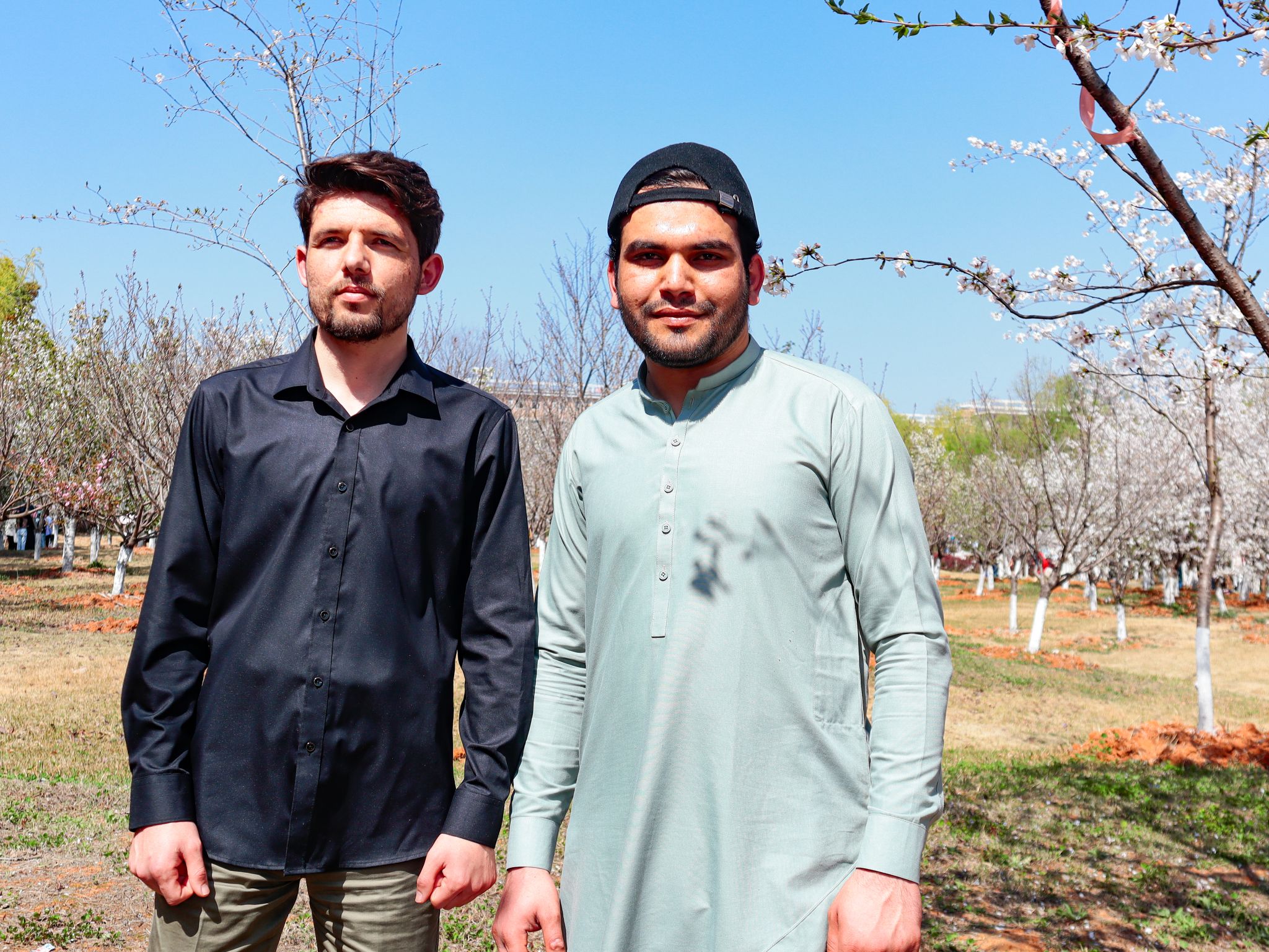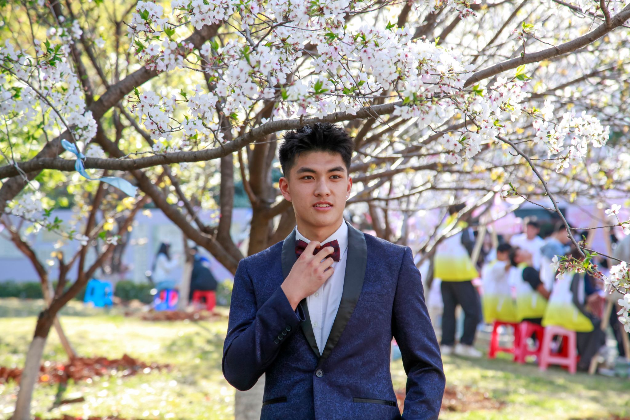帅哥与樱花树合影 吴毅萌摄