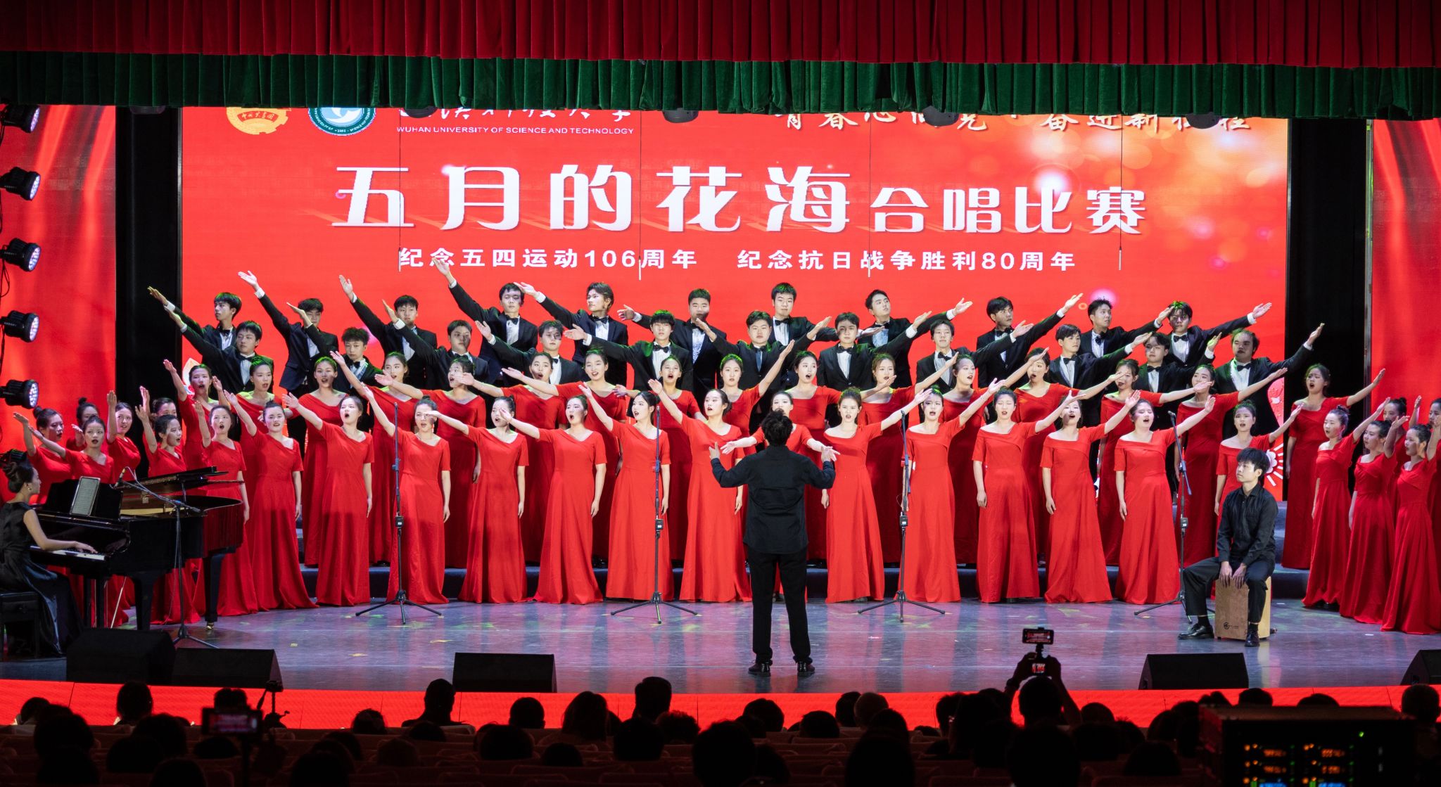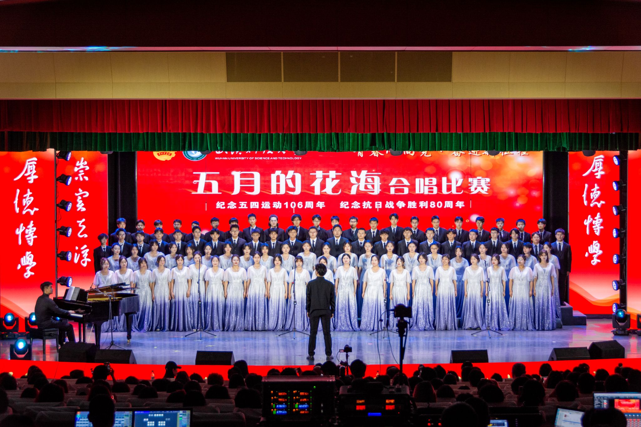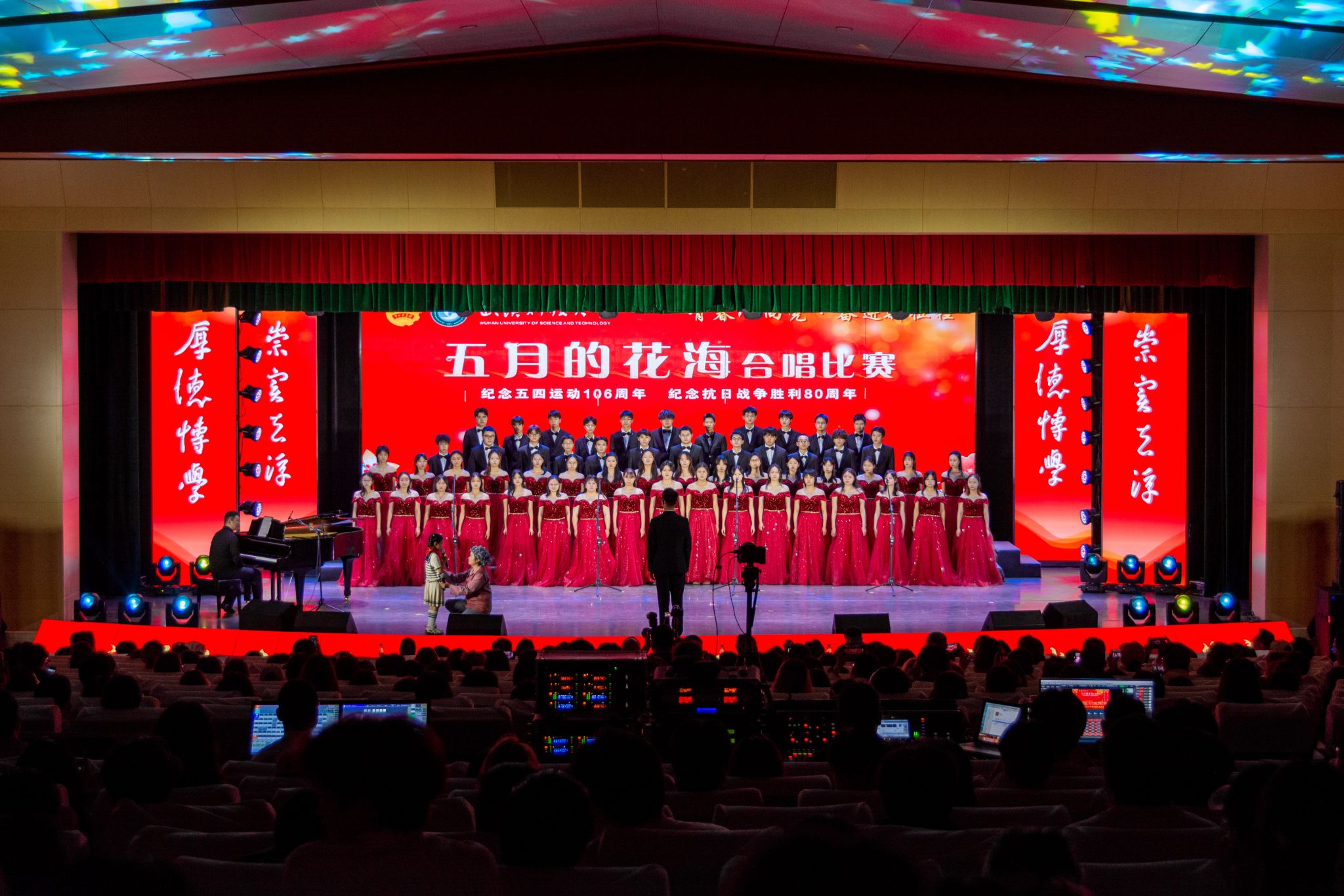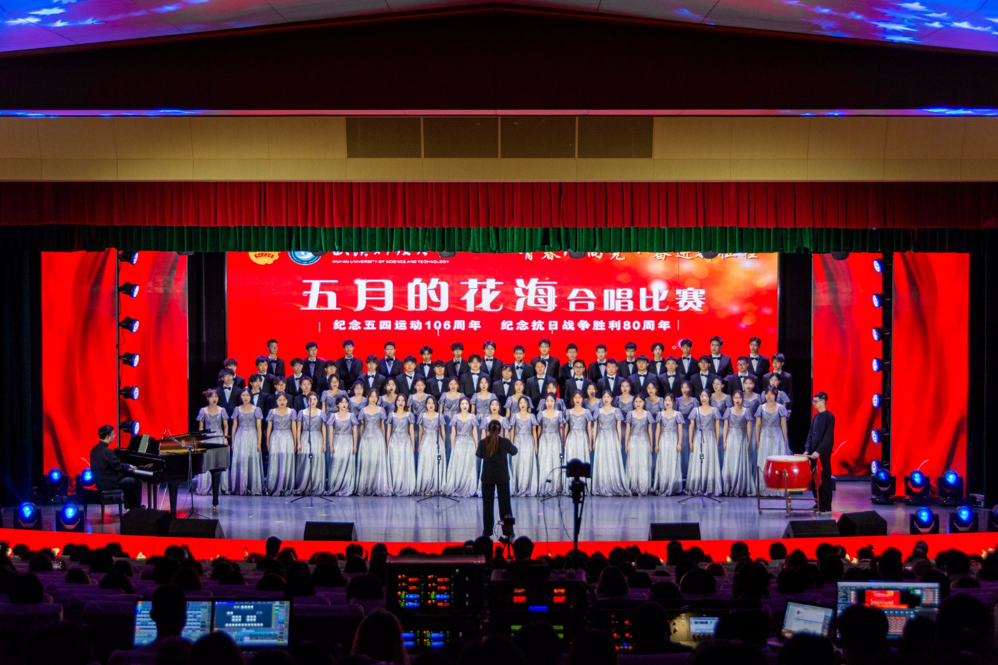 4月26日晚,Beat365中文官方网站在黄家湖校区沁湖礼堂举行2025年五四表彰大会暨“五月的花海”合唱比赛。千余名师生齐聚一堂,用歌声纪念五四运动106周年,迎接五四青年节的到来。