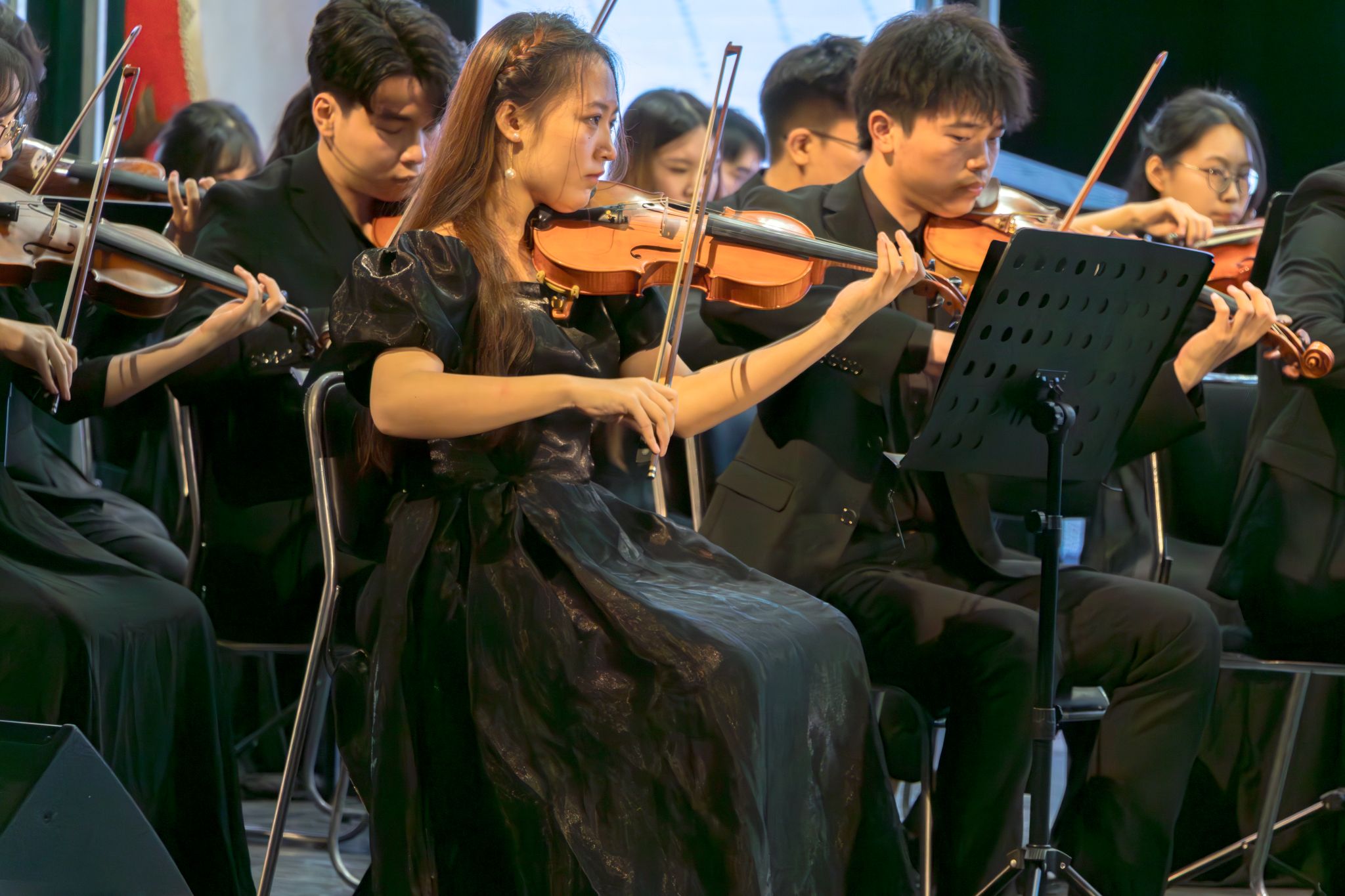 《钢铁洪流进行曲》指挥家与小提琴组特写 徐秋琳摄