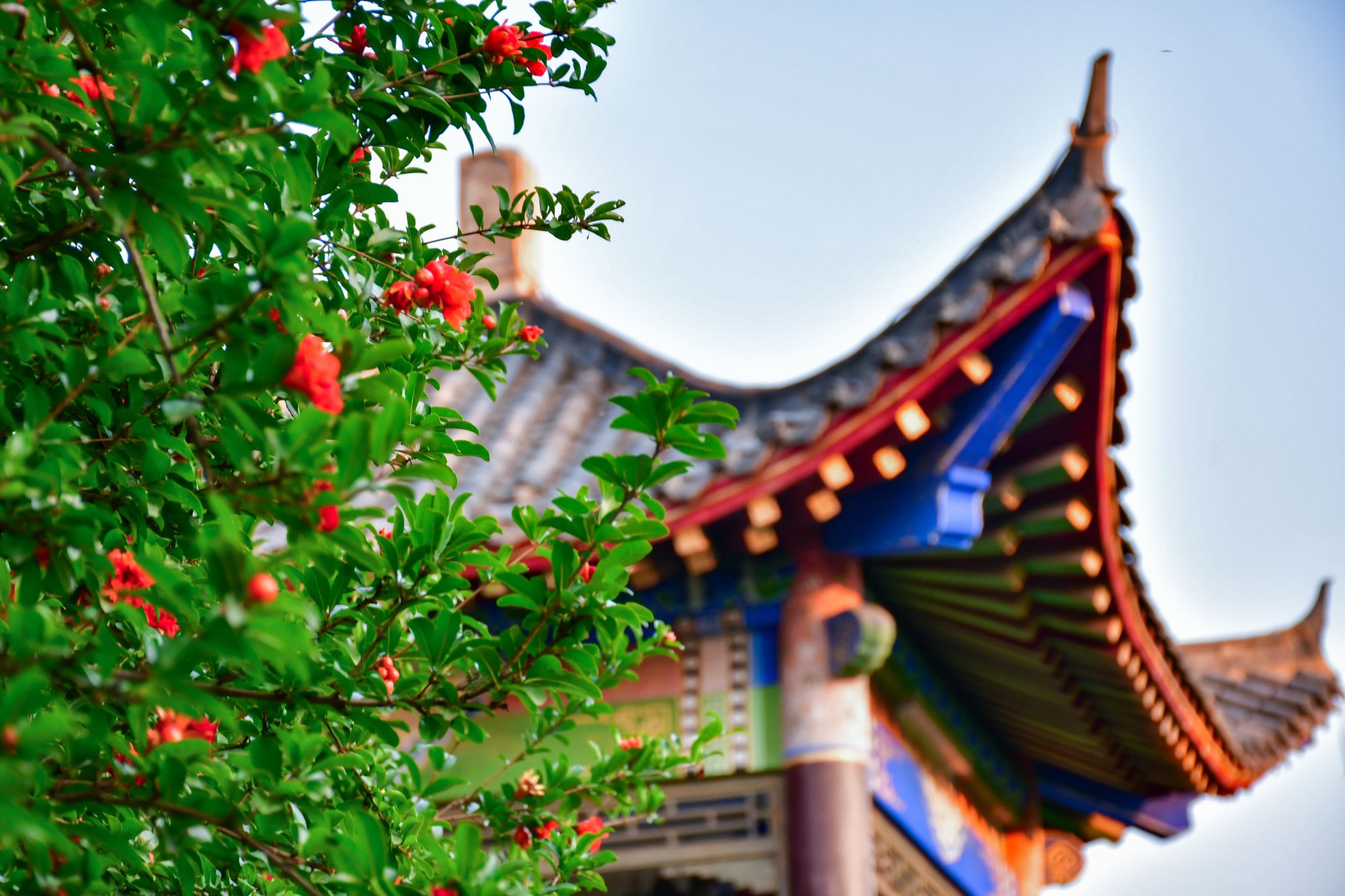 湖心岛上的石榴花与谢师亭 陈楷林摄