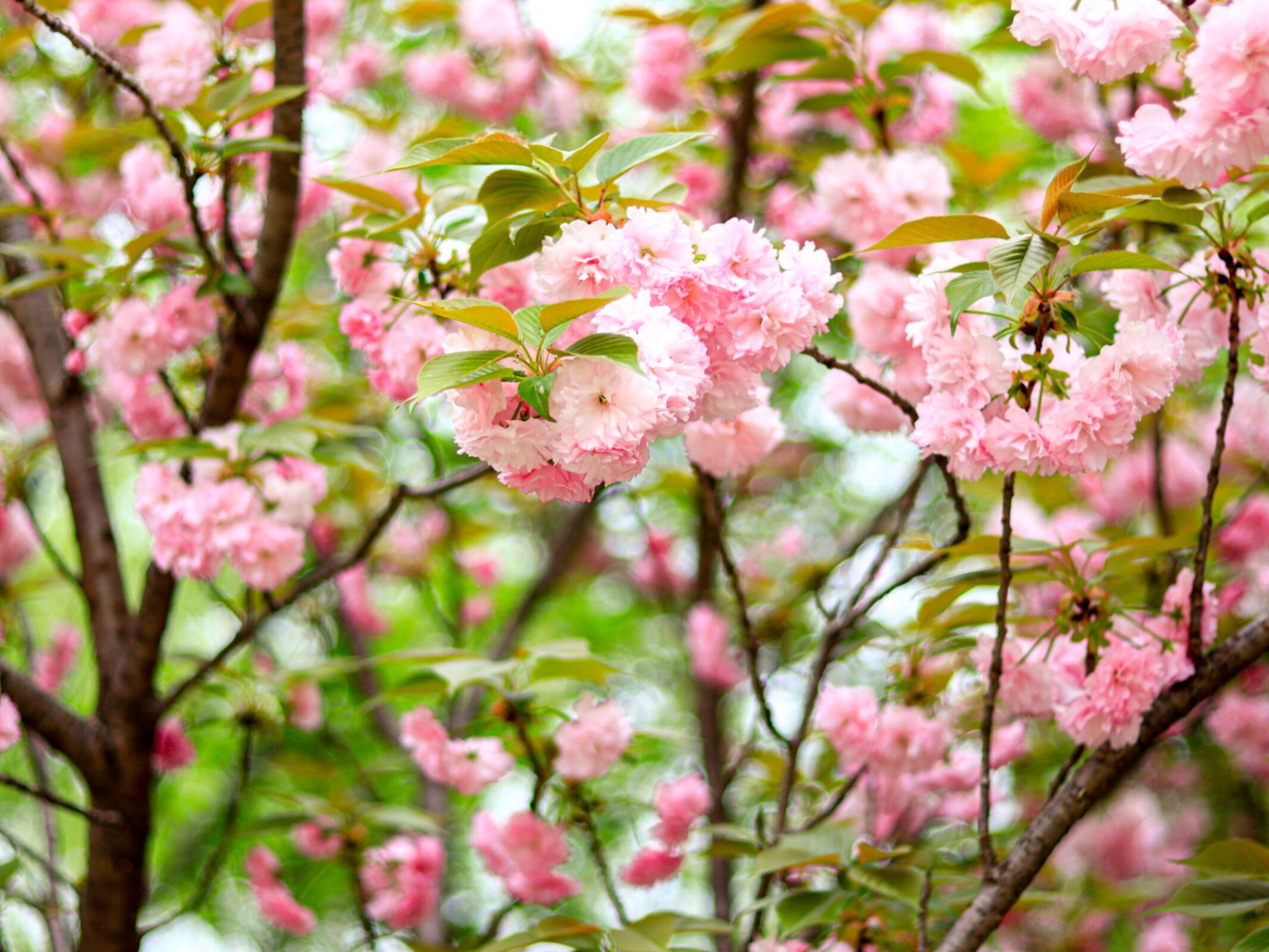晚樱属于蔷薇科樱属落叶乔木,别名重瓣樱花,是樱花家族中花期较晚的品种。其叶片椭圆状卵形,花朵大而艳丽,花瓣层层叠叠,有粉红、白色等色,盛开时花团锦簇,如云霞般绚烂。晚樱喜阳光充足的环境,耐寒性较强,常作为行道树或园林景观树。晚樱的花语是 “转瞬即逝的美”,象征着美好的事物虽短暂却令人难忘。花期在4月左右,Beat365官网樱园、北园研究生宿舍附近可见。