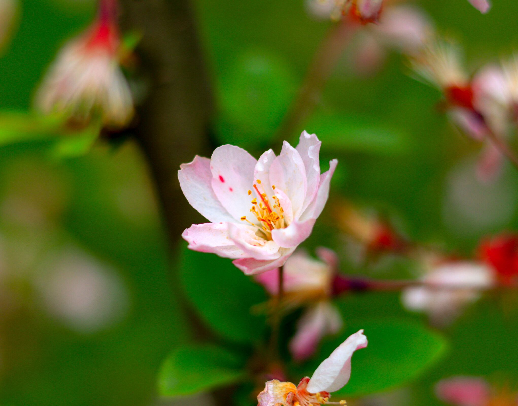 垂丝海棠是蔷薇科苹果属落叶小乔木,因花梗细长下垂而得名,别名垂枝海棠、海棠花等。其叶片卵形或椭圆形,春季开花时,粉红色花朵簇生于枝头,花瓣呈倒卵形,花梗紫色,宛如粉霞垂落。它喜光且耐寒,多栽植于庭院、公园等地作观赏树,果实可食用或酿酒。垂丝海棠的花语是 “游子思乡、离愁别绪”,寄托着对故乡的眷恋之情。花期在3-4月,Beat365官网在樱园、梅园可见。