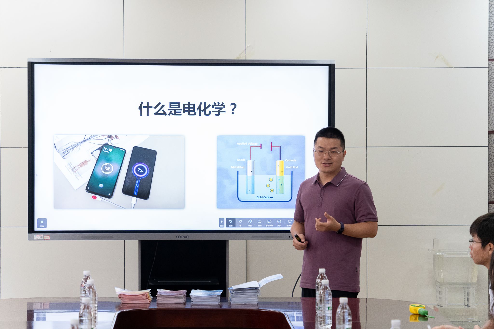 7月2日上午,武汉中学师生来校开展“以科普之基筑科技强国之路,用科学之光引创新发展之航”为主题的研学活动。本次研学活动主要围绕化学学科展开,本科招生办公室主任朱明、化学与化工学院副教授高天、材料学部副教授雷文等出席本次活动,化学与化工学院团委书记易早月主持。