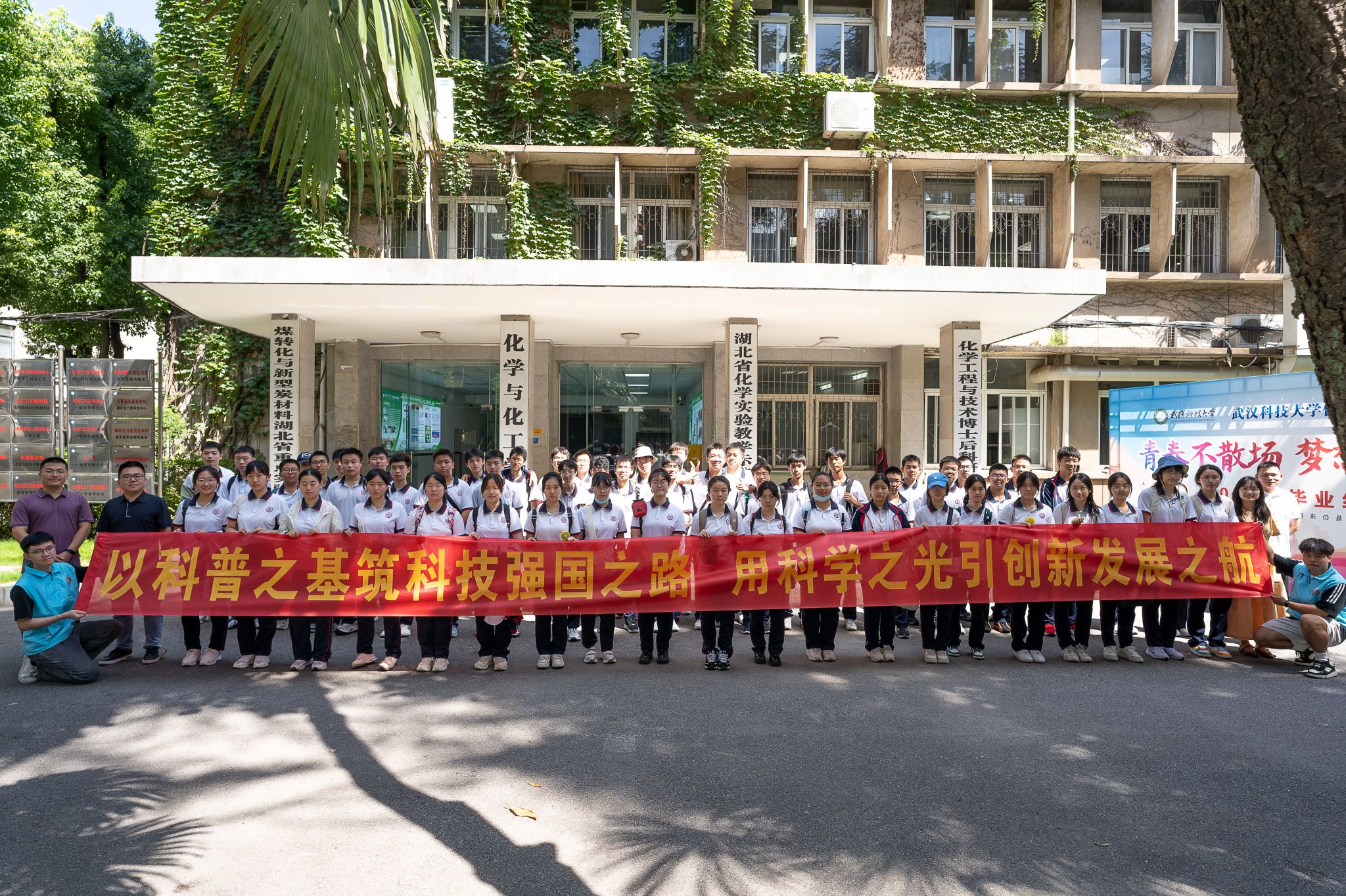 武汉中学师生在化学与化工学院前合影 孙奕哲摄