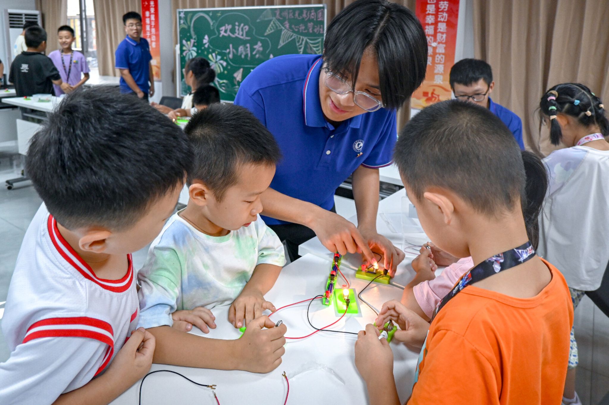 支教老师在和现场学生进行趣味实验 胡泰山摄