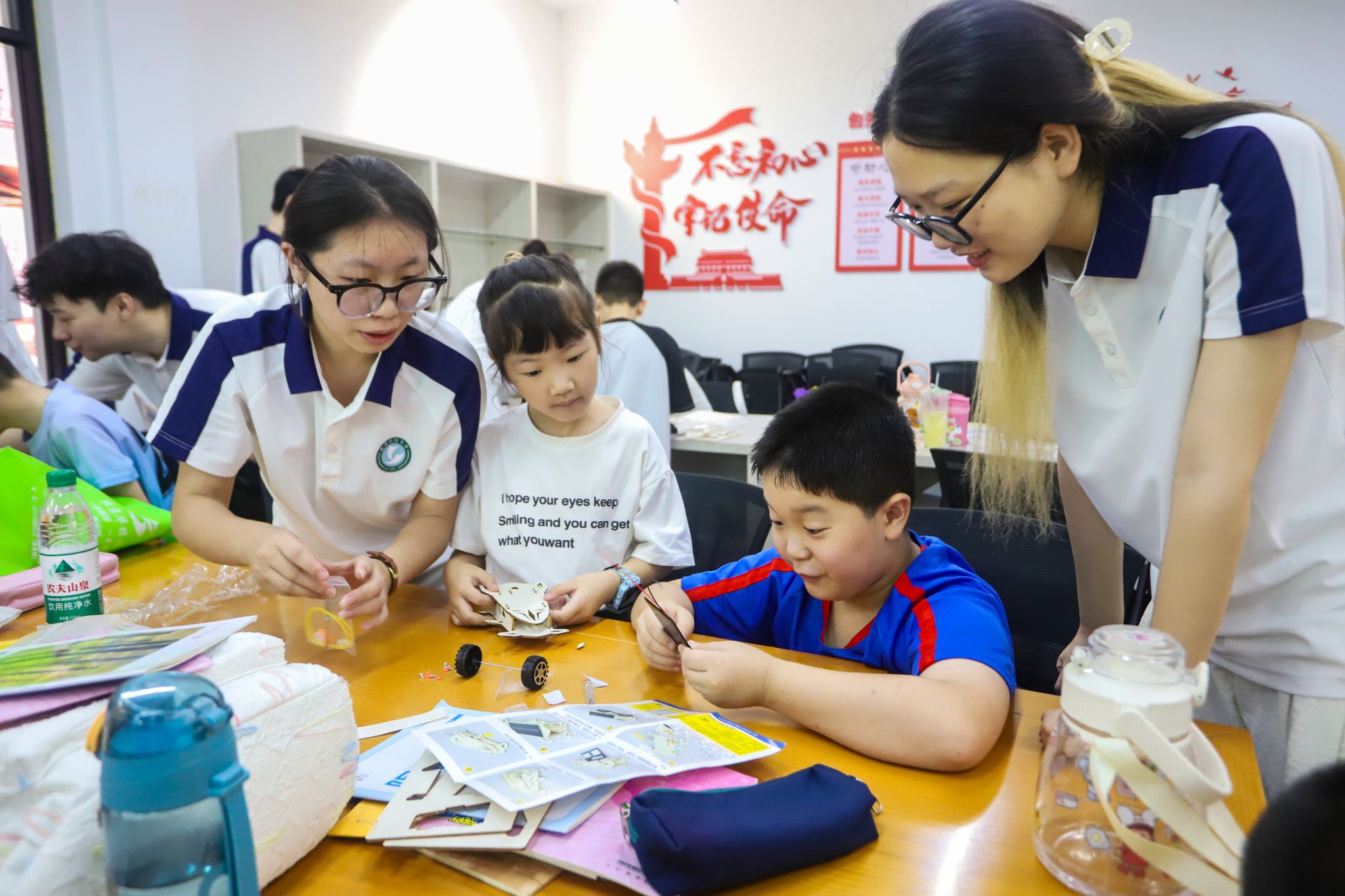 实践队员在爱心小屋开展五育支教活动 杜秉朔摄