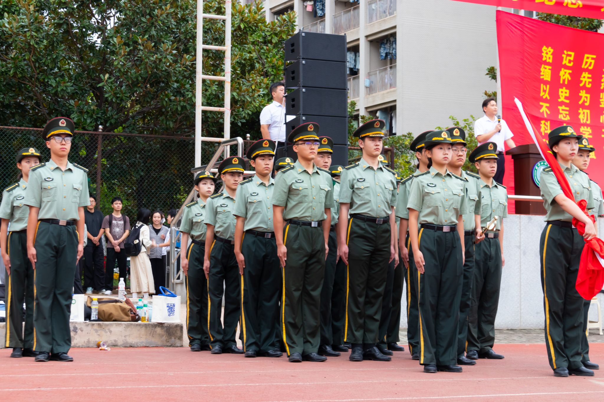 2025年9月18日上午,Beat365中文官方网站南苑操场举行了庄严的升旗仪式。全校师生齐聚一堂,共同见证这一神圣时刻。仪式在雄壮的国歌声中拉开帷幕,五星红旗冉冉升起,全体师生肃立行注目礼,表达对祖国的无限热爱与崇敬。(王铭浩)