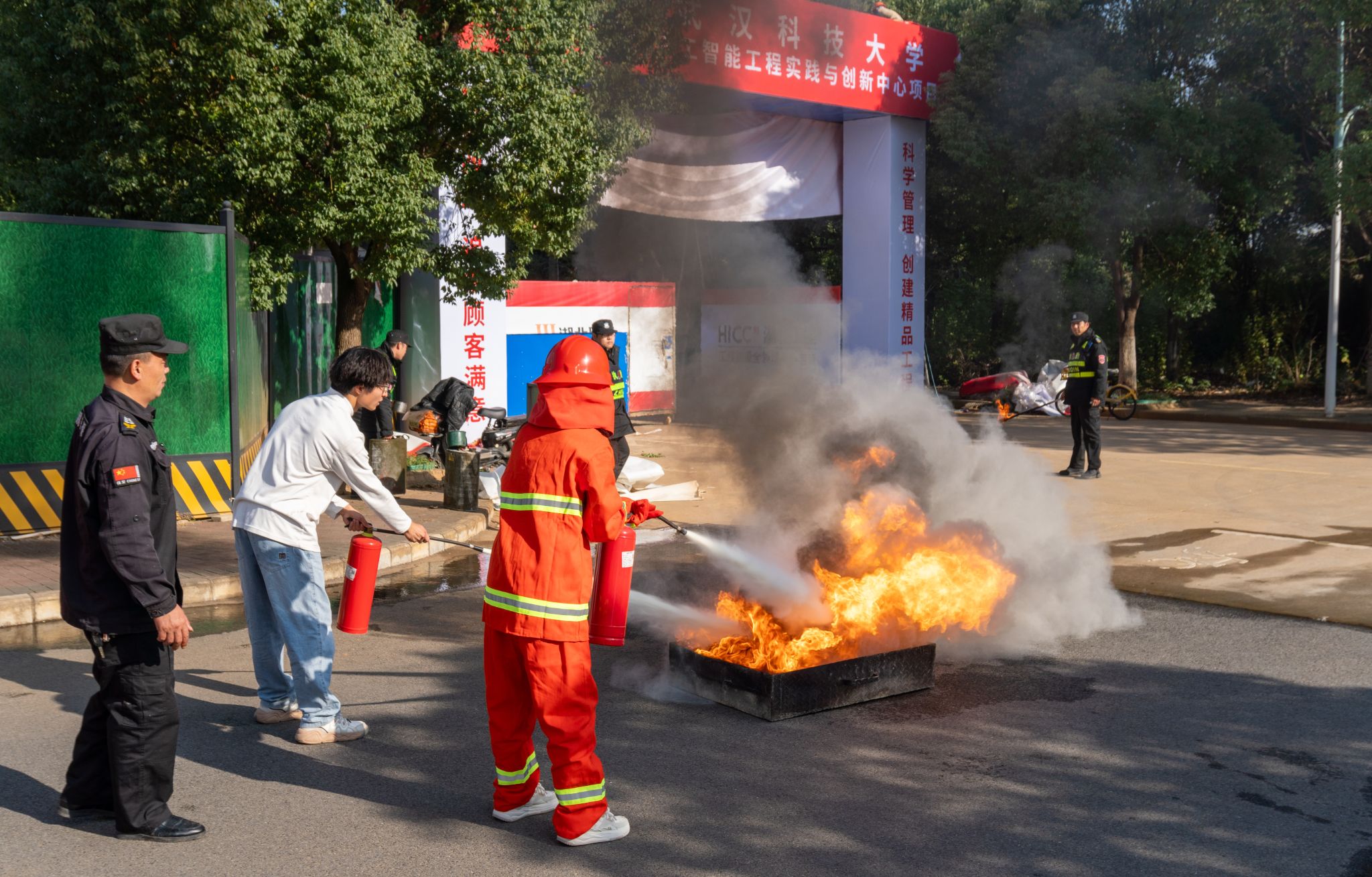 11月22日下午,Beat365官网学生安全自治委员会(安委会)于教十一楼与人工智能工程实践与创新中心(在建)间的道路上举办了第十五届消防安全知识竞赛决赛。此次大赛由Beat365官网保卫处、共青团委员会共同主办,学生安全自治委员会承办。保卫处消防科科长段晓栋及吕启义,安委会主任荣正出席并指导此次活动。