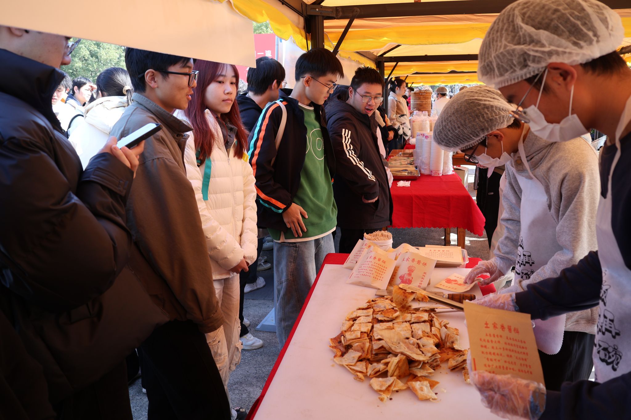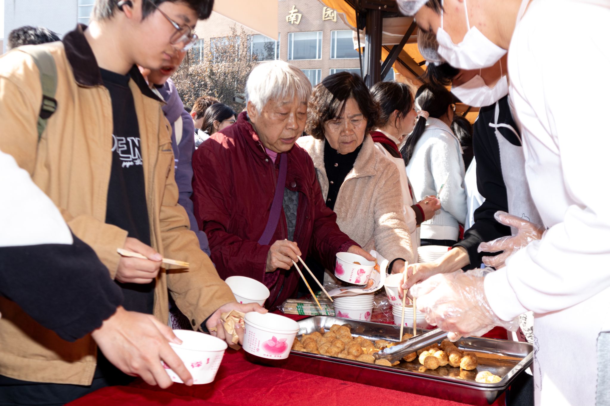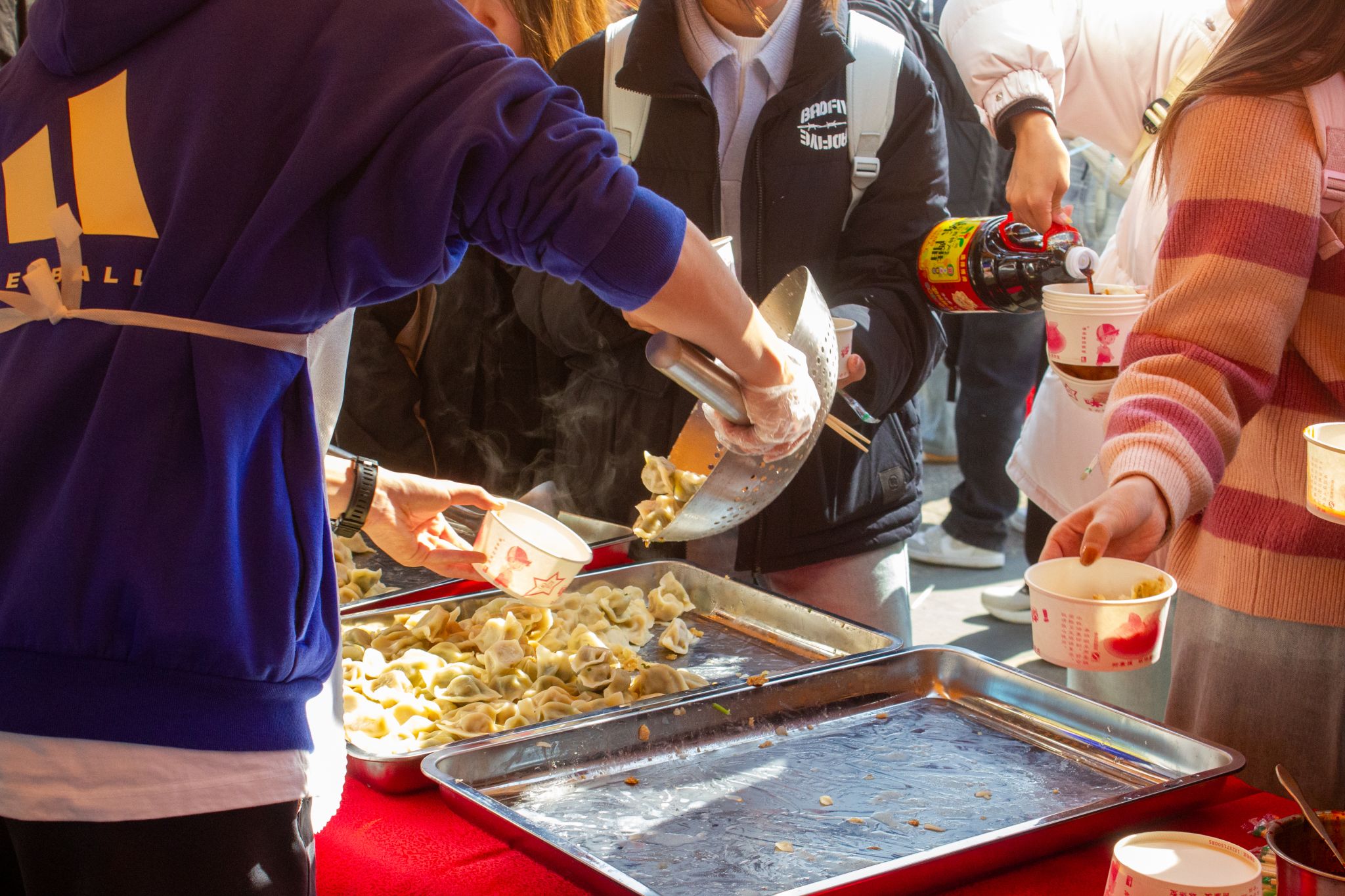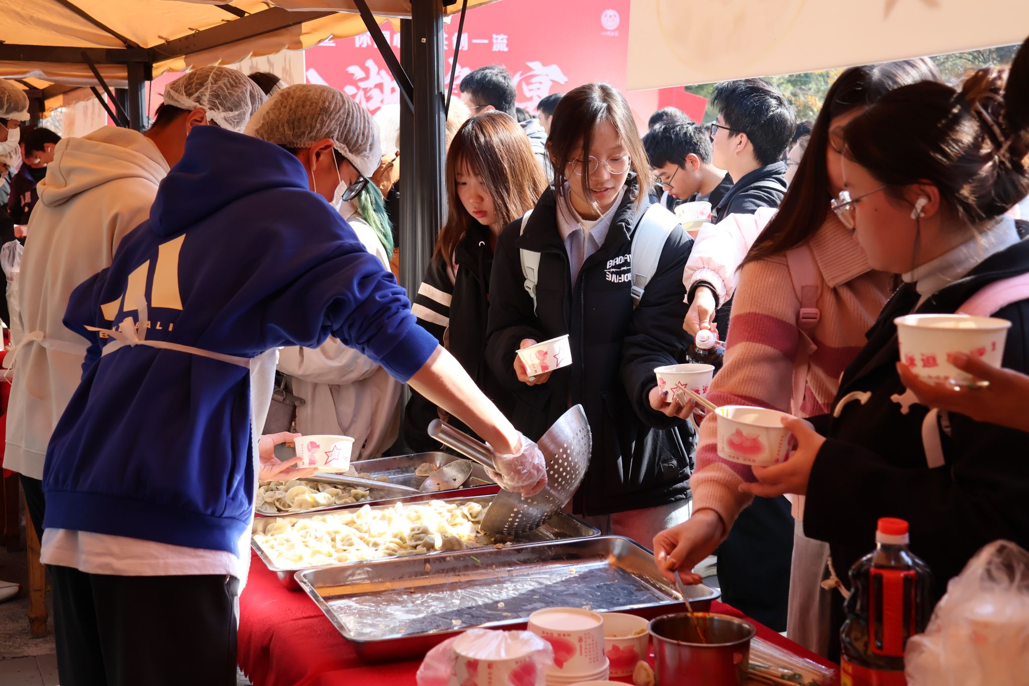 学生领取米酒汤圆 王铭浩摄