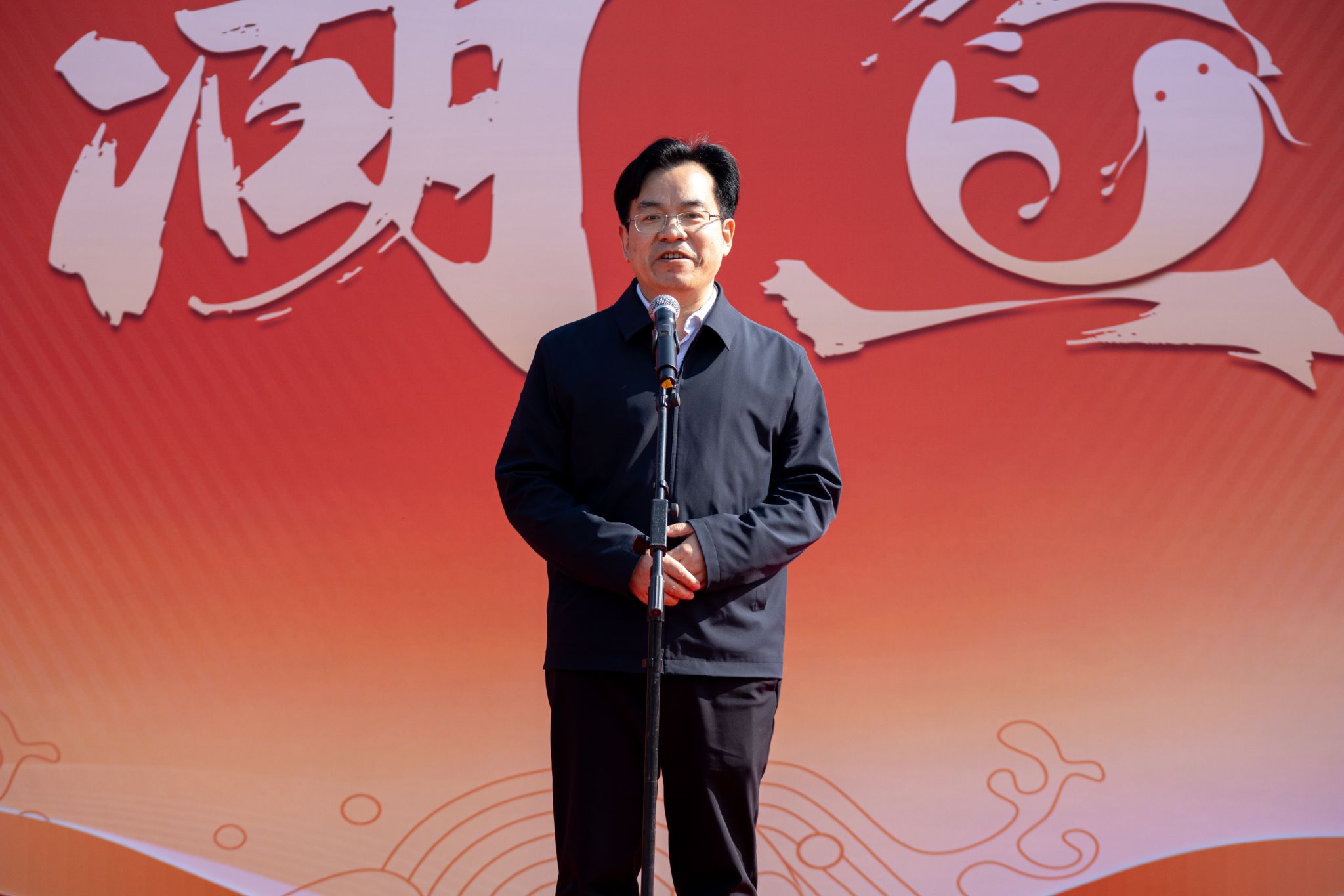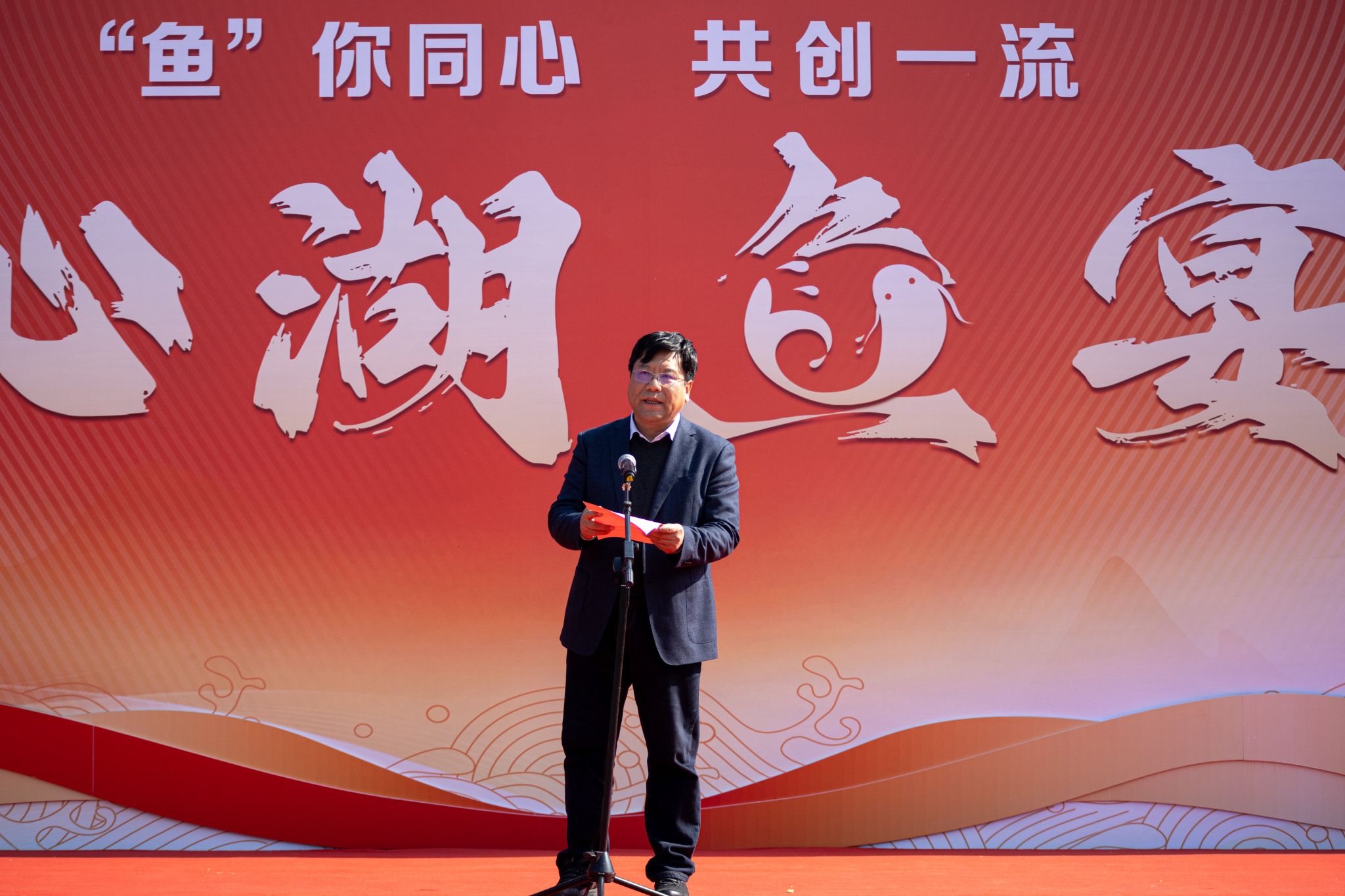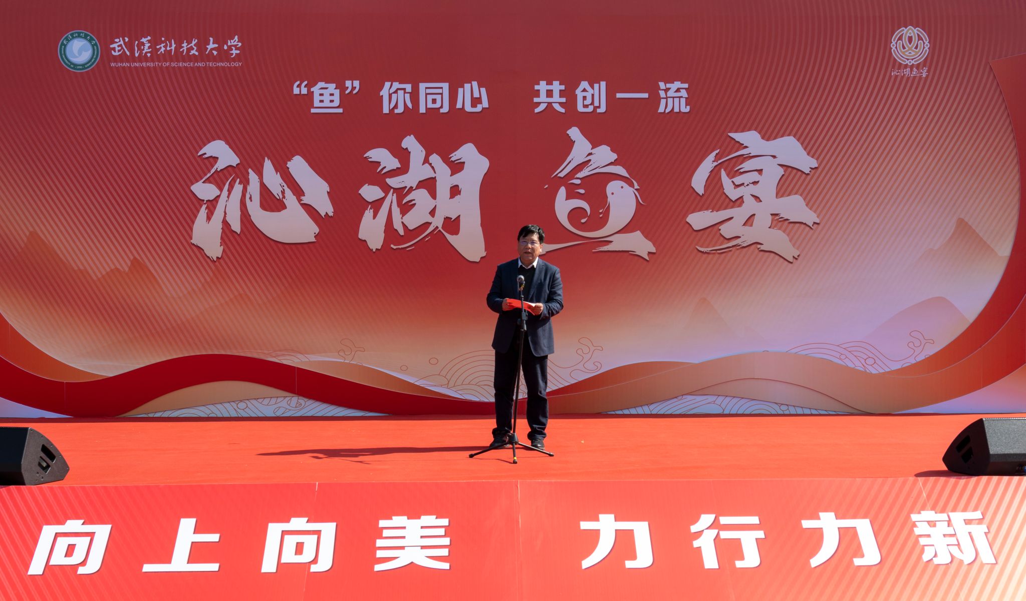 校长吕勇宣布沁湖鱼宴正式开幕 王铭浩摄