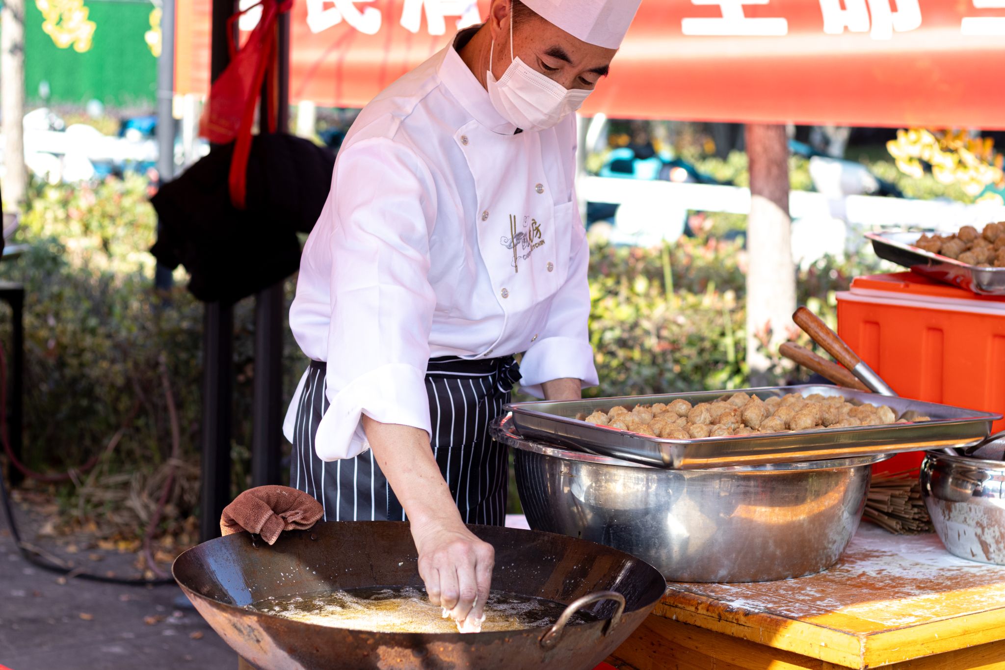 厨师炸肉丸 王铭浩摄