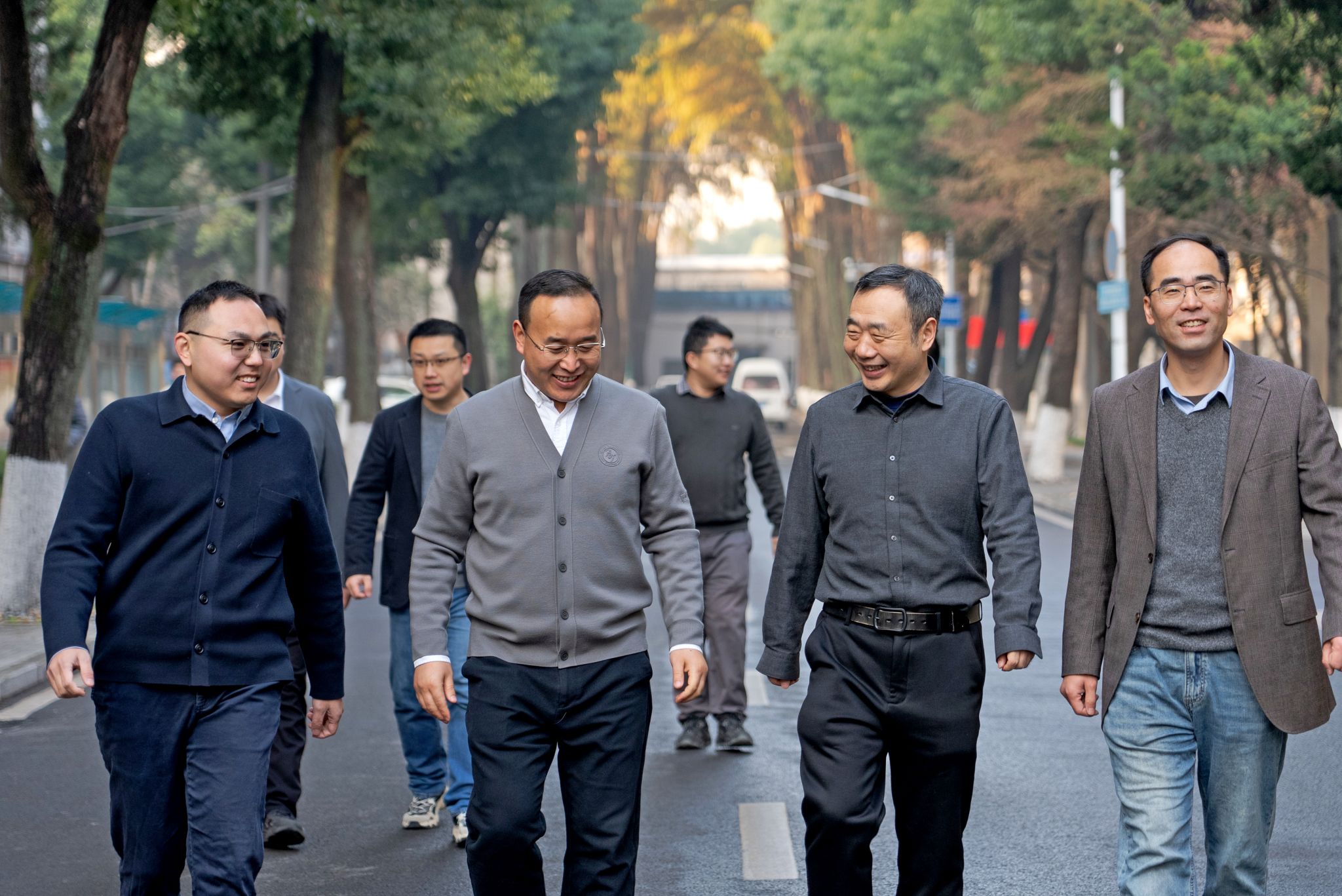 实验室学者们在校园中漫步 毕浩洋摄