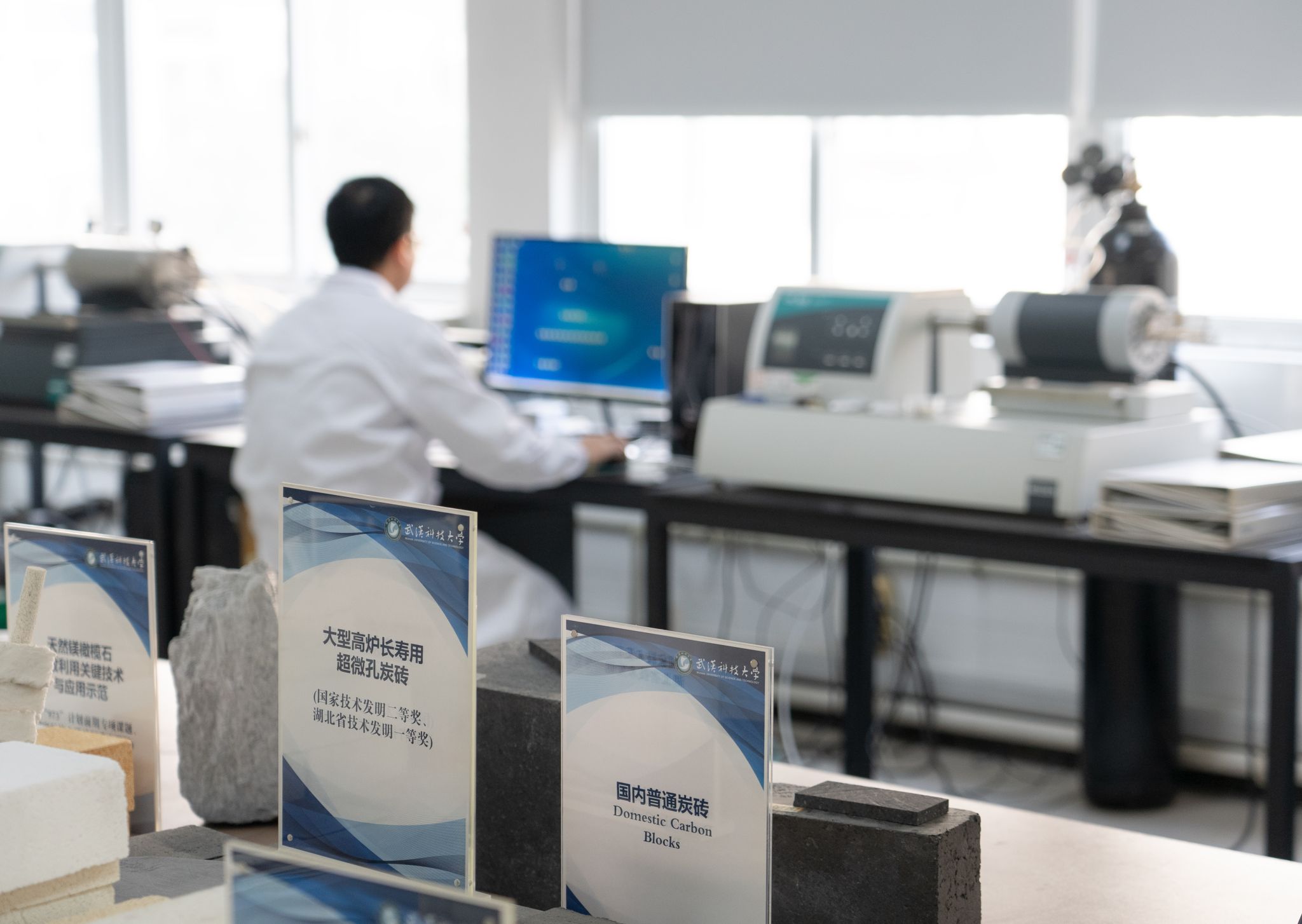 付绿平教授查看耐火材料小样 毕浩洋摄