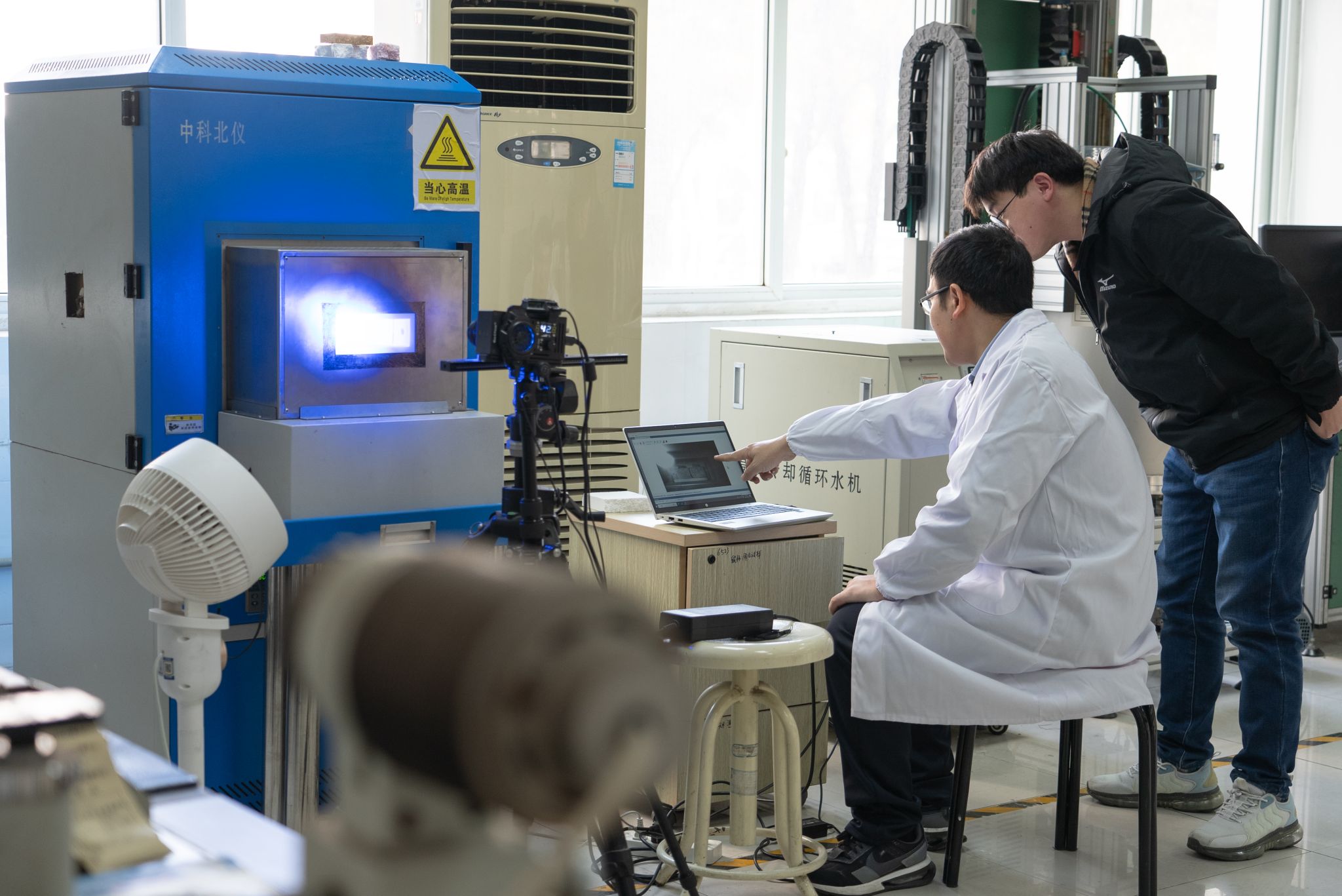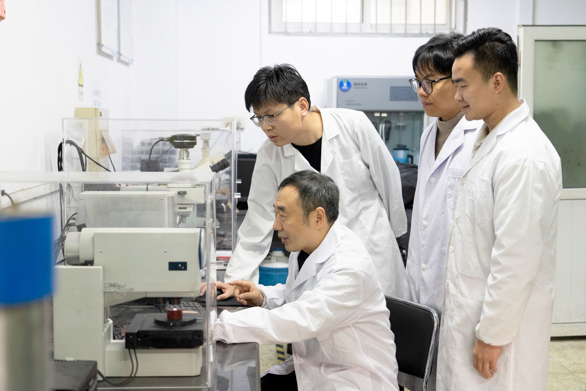 付绿平教授与团队查看实验数据 毕浩洋摄