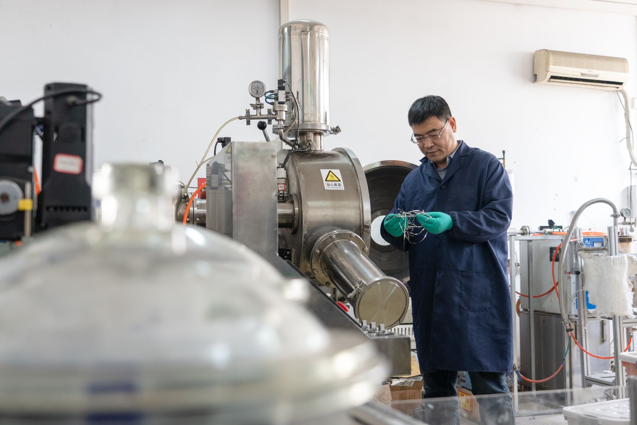 张华教授操作超薄钢设备 毕浩洋摄