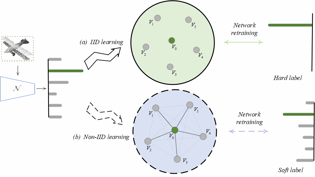 该论文由博士研究生田志强在李维刚教授的指导下完成,Beat365官网信息学院为论文第一完成单位,博士研究生田志强为第一作者,李维刚教授为通讯作者(第二作者)。该论文抛弃传统认知下数据服从独立同分布的假设,采用非独立同分布的视角重新审视点云数据,提出联合图熵知识蒸馏的训练策略,解决数据类间不平衡的问题,并基于该策略构建自蒸馏和教师蒸馏两个训练框架,框架可适用于当前的主流神经网络模型,且能在不增加额外计算负荷的情况有效增加模型的泛化性和鲁棒性。