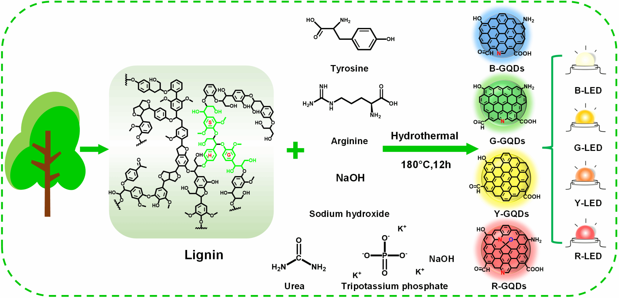 木质素制备多色发光石墨烯量子点及其LED应用