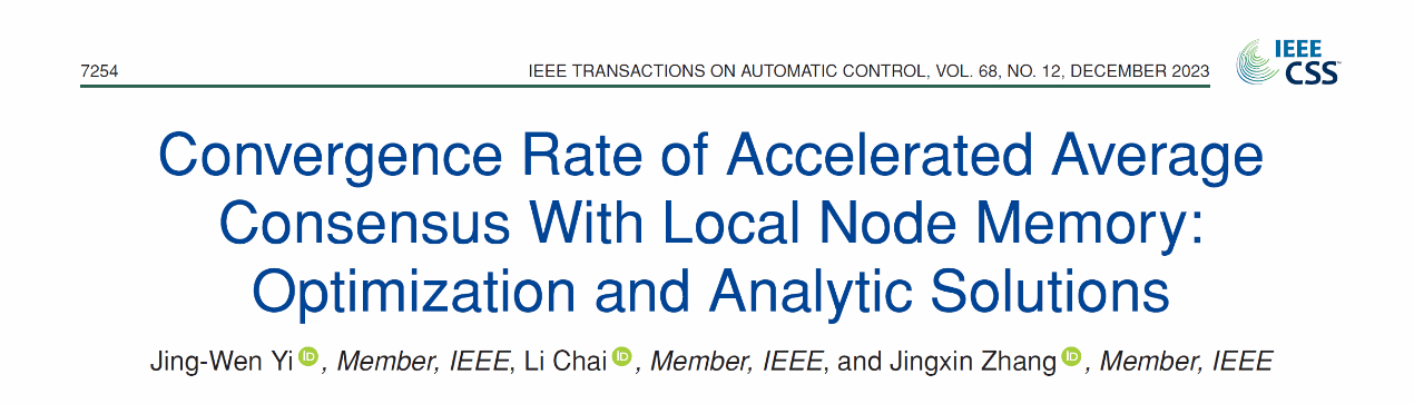 武科大网讯 近日,人工智能与信息融合研究院在多智能体平均一致性研究中取得重要进展,解决了记忆加速算法研究中的几个公开难题。研究结果以长文(full paper)发表在控制学科两大顶级期刊之一的IEEE Transactions on Automatic Control (TAC),双栏16页。