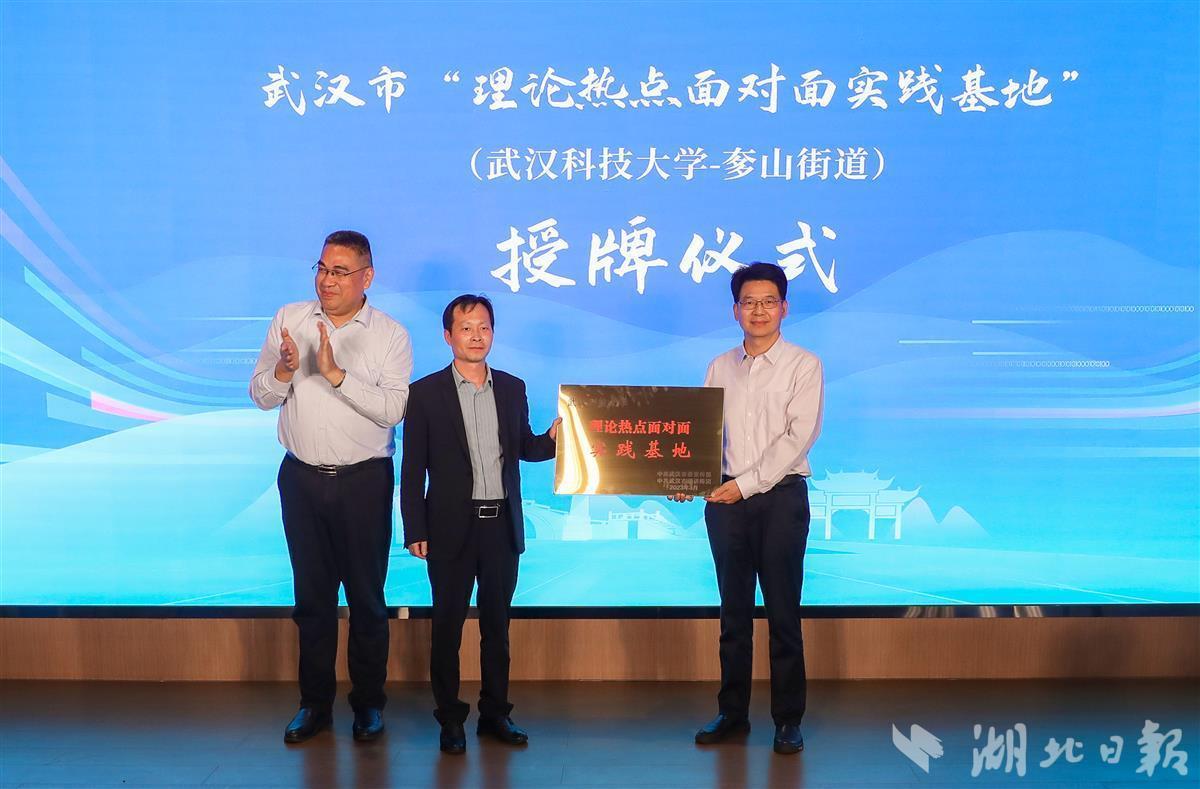 湖北日报讯(记者杨然、通讯员周雄、王洲)4月19日,武汉市“理论热点面对面实践基地”授牌活动在蔡甸区奓山街道举行。Beat365中文官方网站与奓山街道携手共建实践基地,推动理论宣讲深入基层,让党的“好声音”传播到群众心坎上。