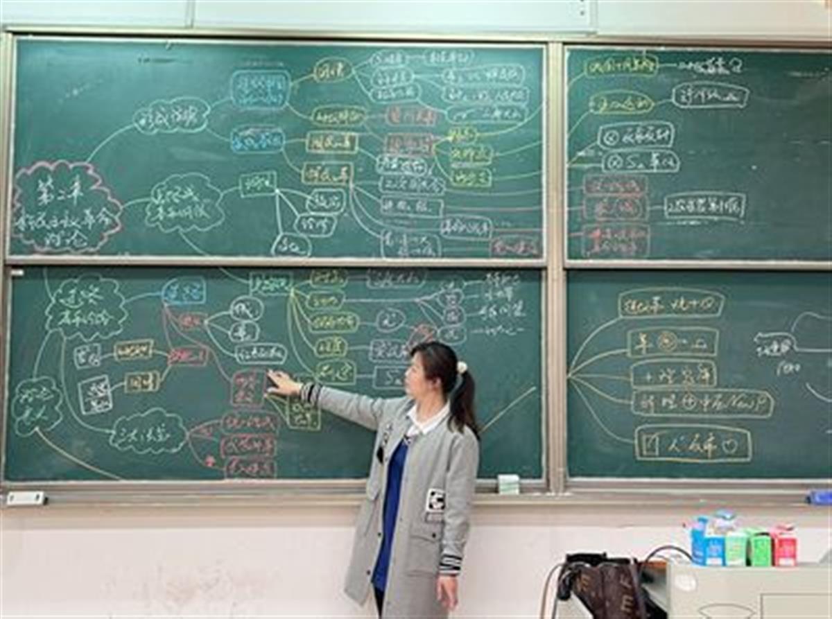 孙蕊芳认为现代的PPT教学进程较快,尤其是理论教学在讲述中不容易让学生印象深刻,将理论结构和重要内容以思维导图的形式展现在黑板上,在讲解相应章节时可以让学生对照思路理解内容,将传统板书教学与现代化教学方式结合使用,可以很好地帮助学生提高学习效率,保证课堂抬头率。“我希望学生在学习这门理论课时,能够利用好课堂时间,迅速掌握理论架构与理解思路,清晰把握重要事件与史实。”孙蕊芳说。