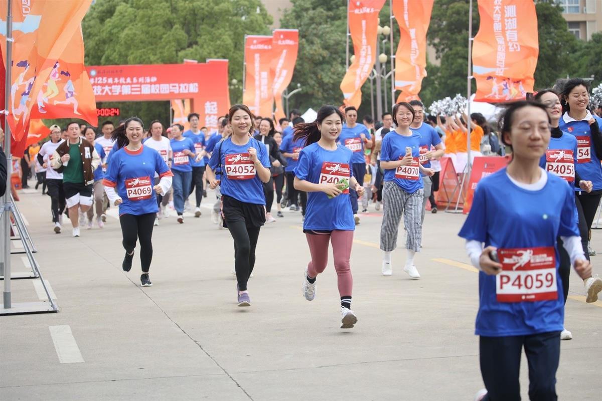 据悉,此次校园马拉松分为教工组、校友组、学生精英组和健康组,共有1250位学生,125位教工,125位校友参与,全程共五公里,经过该校沁湖及湿地公园。枪声响起,各个组别有序起跑,路边观众和拉拉队员不断为参赛选手呐喊助威。志愿者各就其位,认真观察着选手的状况,为选手及时进行物资补给。队伍中也不乏校友带着孩子一起感受马拉松热闹的气氛。
