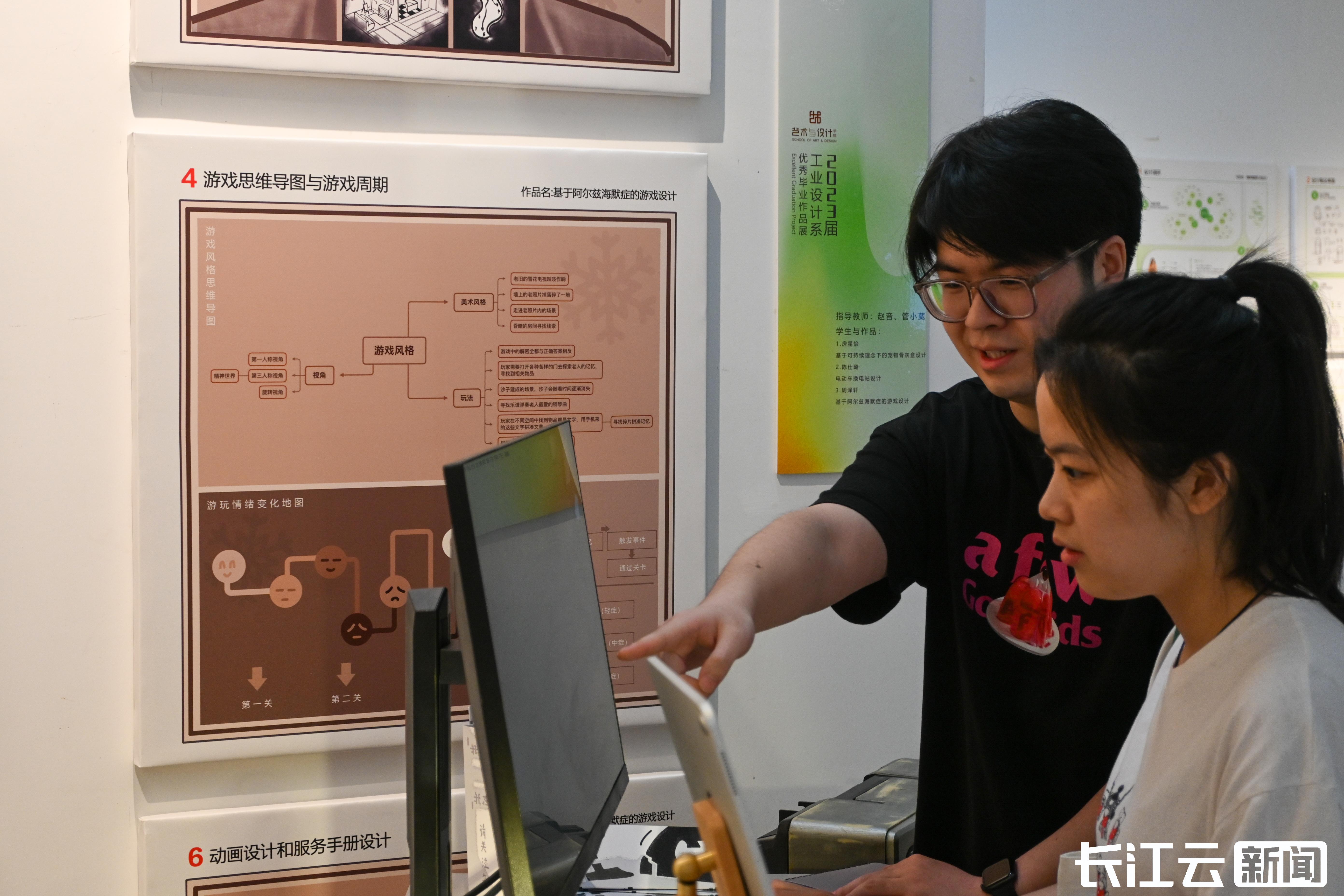 在众多形式各异的展品中,名为“基于阿尔兹海默症的游戏设计 ”的作品吸引了许多观众驻足,细致新颖的游戏设计图纸、现场的络绎不绝的参与体验人群给前来参展的人们留下深刻的印象。它以游戏设计为工具,通过角色扮演来进行主动输出,使用者以阿尔兹海默症患者的视角进行通关,在游戏关卡的层层递进中感受到这类人群面临的困境。