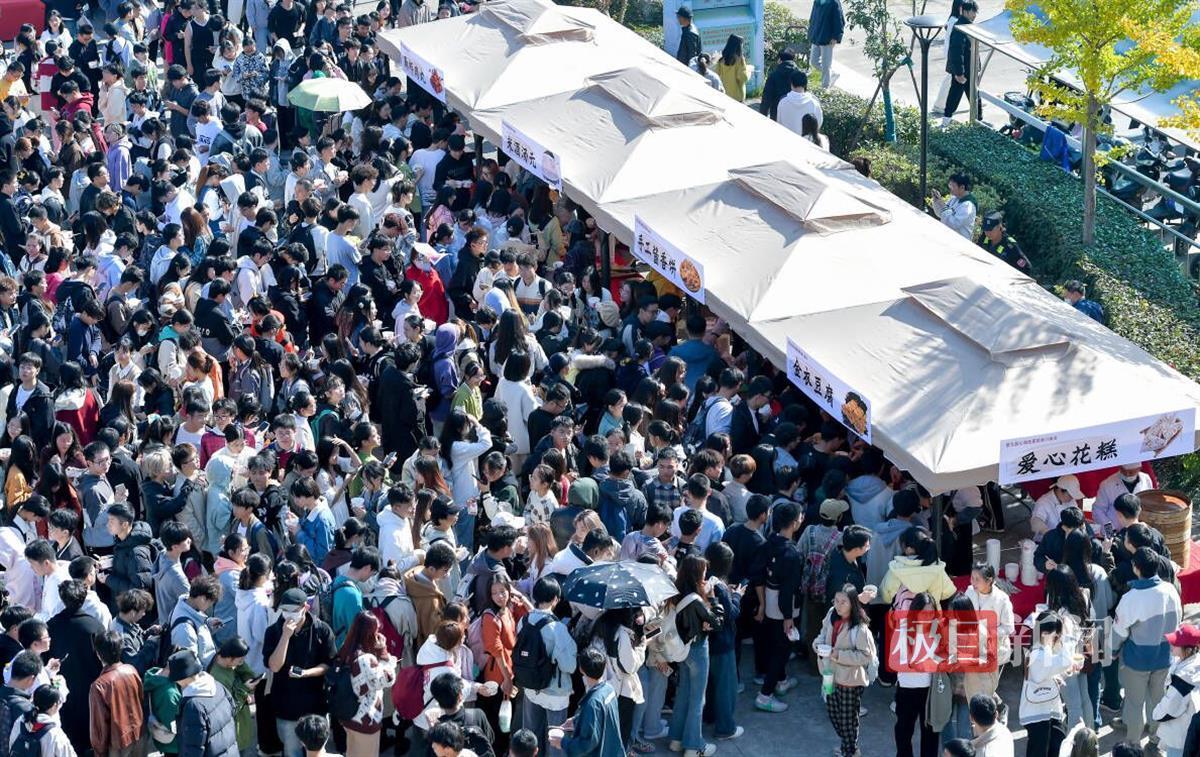 当天,武科大党委书记徐雁冰宣布沁湖鱼宴开幕。在该校南园餐厅广场的展台上,摆放着刻有“125”“1898-2023”等校庆元素的菜品,以沁湖鱼鲜为主材,由各餐厅厨师精心制作。餐厅门前的“小庙会”吸引了大量师生驻足,学校食堂的大厨现场制作特色小吃,酥炸肉丸、小鱼小虾、爱心花糕等10个摊位上的小吃供师生免费品尝。该校大一学生高延云表示,学校举办这样的活动,十分热闹又有文化氛围。