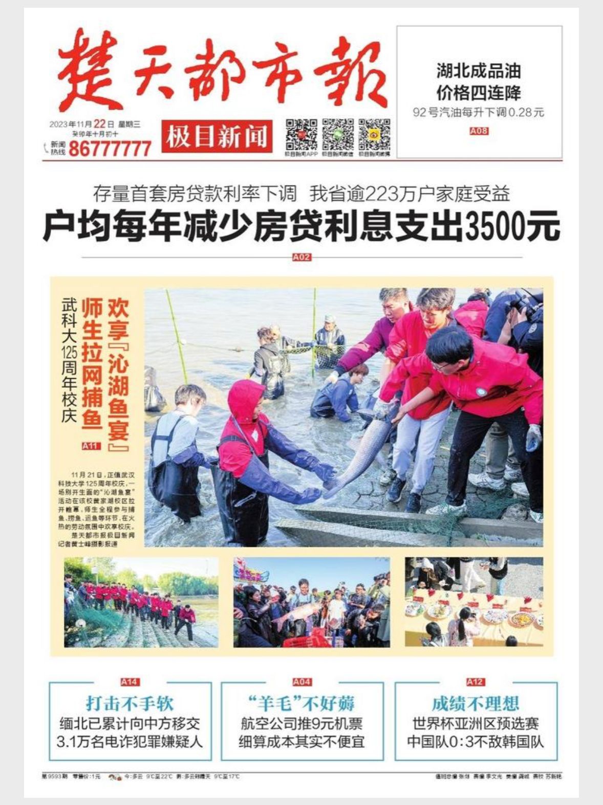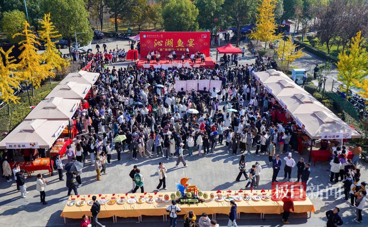 武科大校长倪红卫表示,一流的大学,需要一流的文化。沁湖鱼宴是武科大本着“共建美丽校园,共享建设成果”理念而打造的校园文化品牌,往年在冬至日前后举行,今年将沁湖鱼宴提前至校庆周。请全校师生和广大校友免费品鱼,大家吃的是鲜美的沁湖鱼、品的是深厚的文化味,感受的是浓浓的师生情、校友情。同时,同学们通过喂鱼、护鱼、赶鱼、捕鱼、烹鱼,增强文化认同和文化自信,体验劳动乐趣和劳动辛苦。这场师生同乐、校友共享的盛大活动,全面展示了武科大人砥砺奋进、争创一流的精神风貌,进一步增强海内外校友和广大师生作为武科大人的归属感和自豪感,汇聚推动学校高质量发展的强大合力。