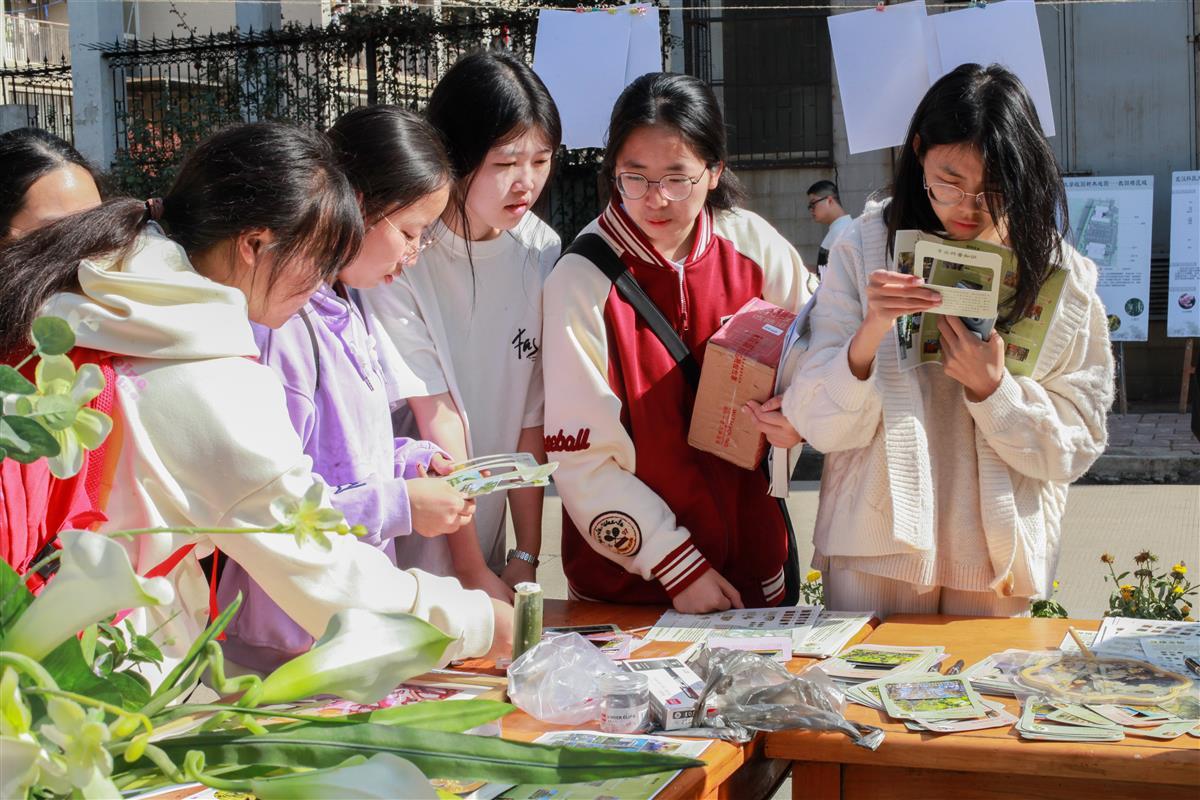 大二学生夏雅杰一下课便来到展品前参观,她说:“以前很喜欢校园里的花卉绿植,但是很少有认识的,在这些作品的帮助下,可以更好地欣赏校园美景了。”