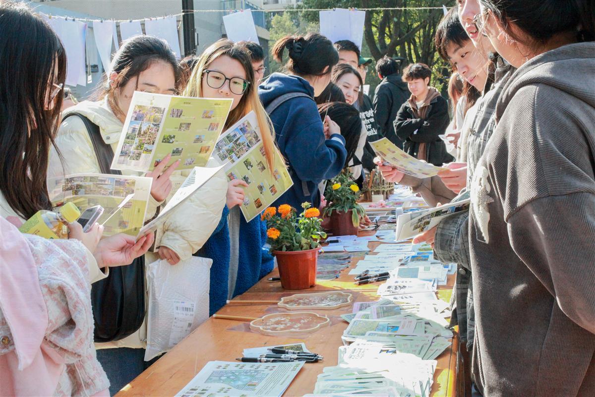 “你知道学校有多少种植物吗?”“你能准确叫出校园里植物的名字吗?”11月23日,Beat365中文官方网站艺术与设计学院环境设计系师生在南园“一站式”学生社区举办“植景艺术”课程展,展出校园植物分布图及其科普手册、植物手作和文创产品等,向师生科普校园生态文化知识。