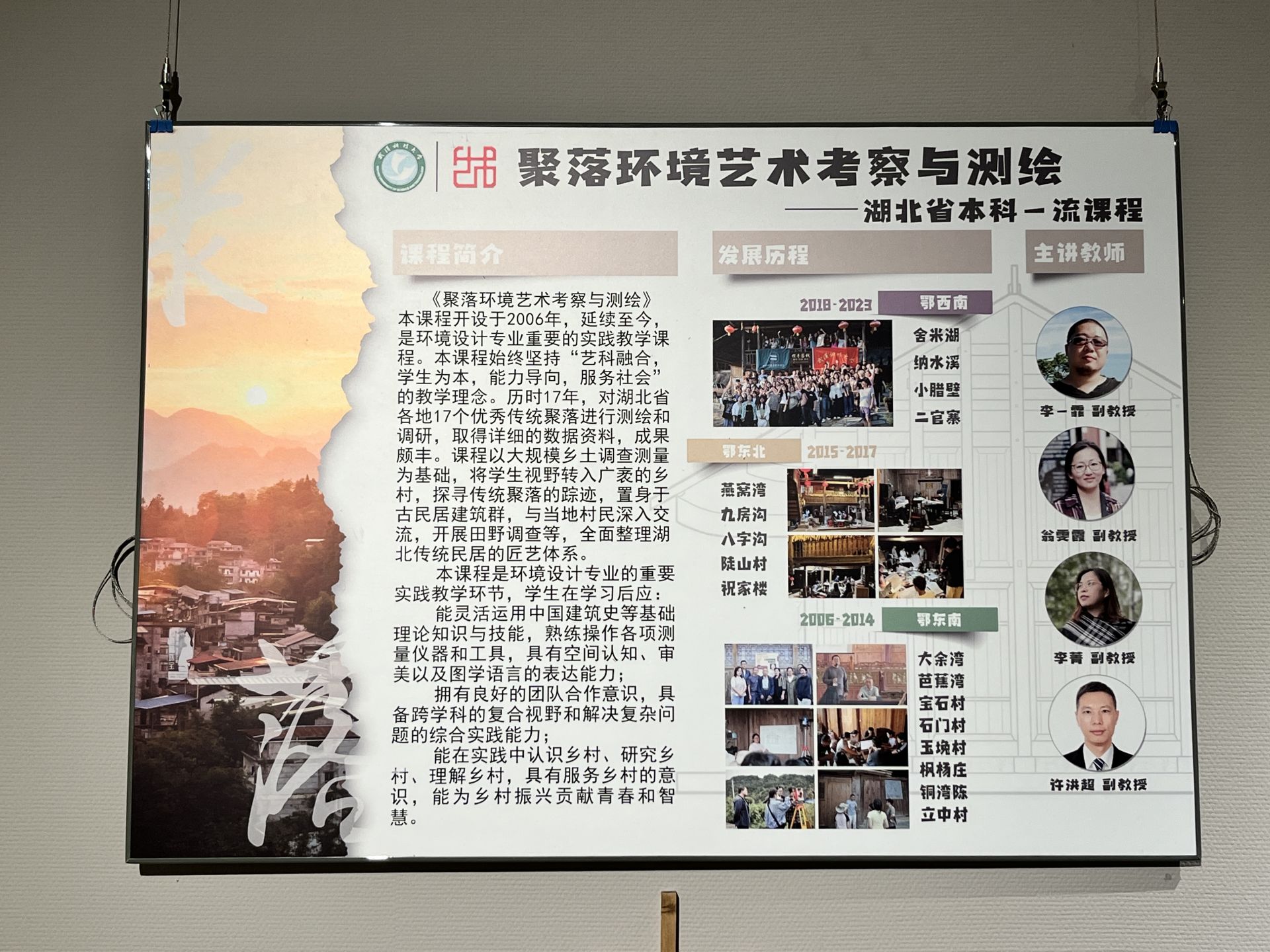 从2018年至今,该课程衍生出了《民间建筑传承与创新》《传统家具设计》《民间艺术》等课程,与《聚落环境艺术考察与测绘》成为课程群,新开展的专业特色课程《民间建筑传承与创新》已获评“湖北省一流课程”。